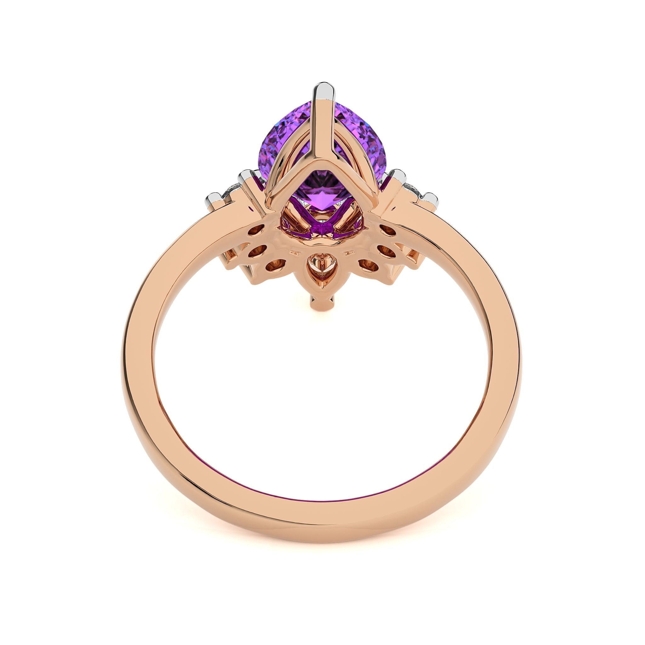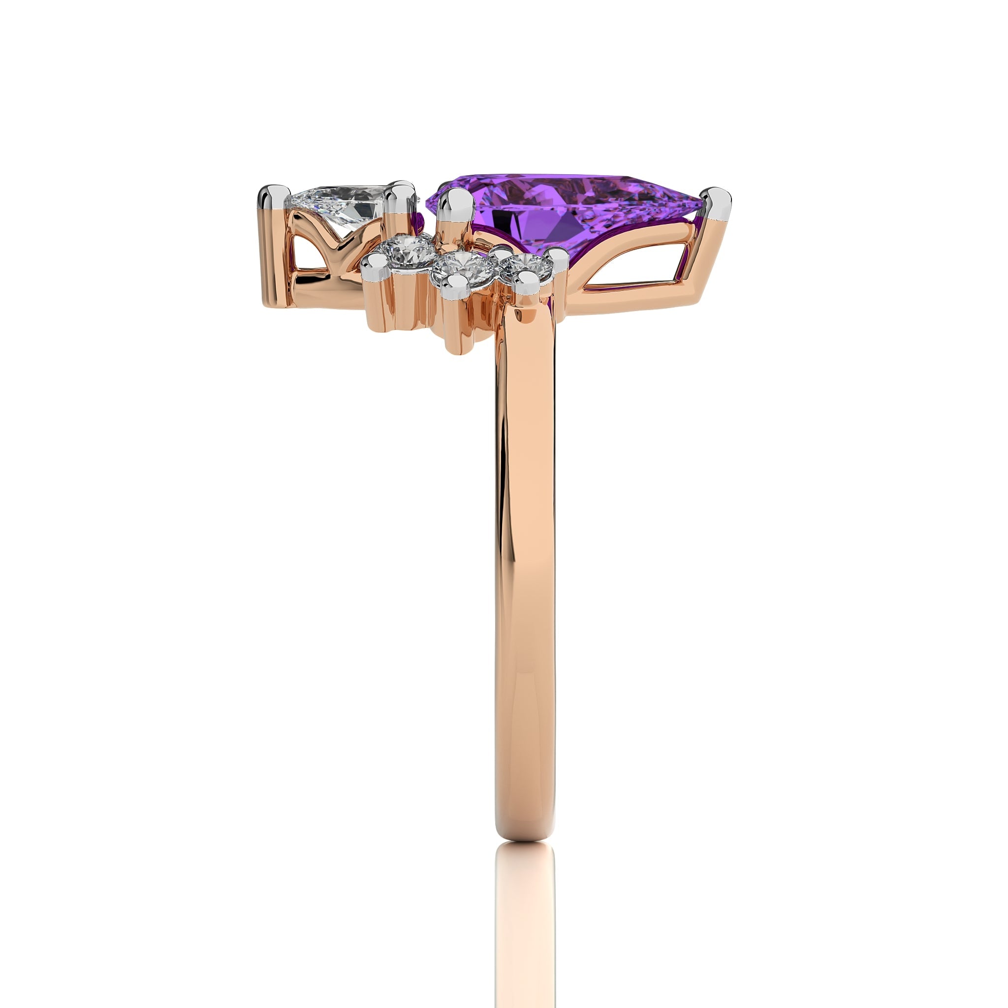 1 1/4 CT. Round and Pear Diamond Natural Diamond and Amethyst Engagement Ring