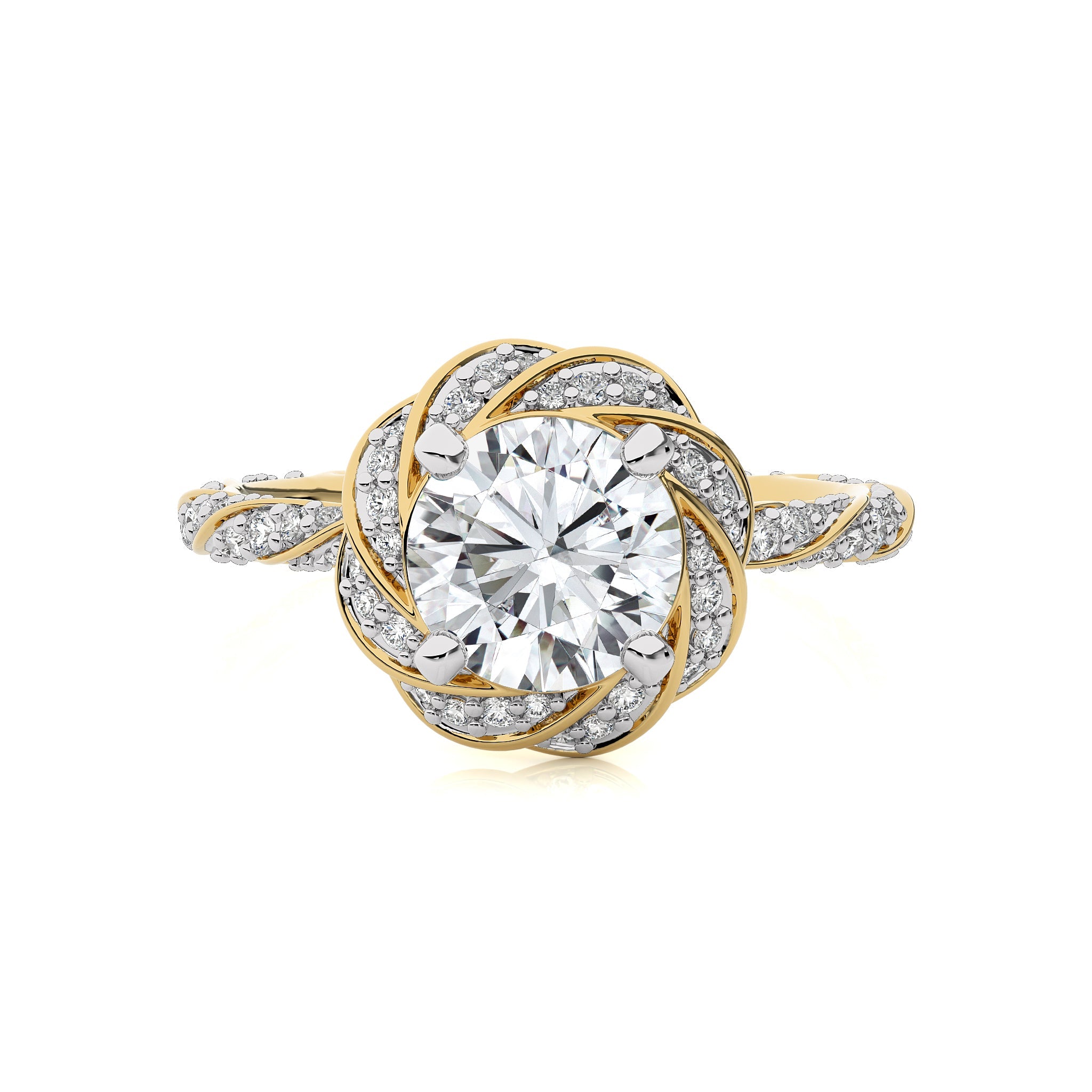 Capture hearts with the stunning beauty of this 2 CT. Center Round Flower Style Twisted Rope Shank Natural Diamond Engagement Ring. Featuring H-I/I1-I2 Quality diamonds, The diamonds are set in a combination of Prong, Pave, and Micro Split settings, creating a mesmerizing display of sparkle and elegance