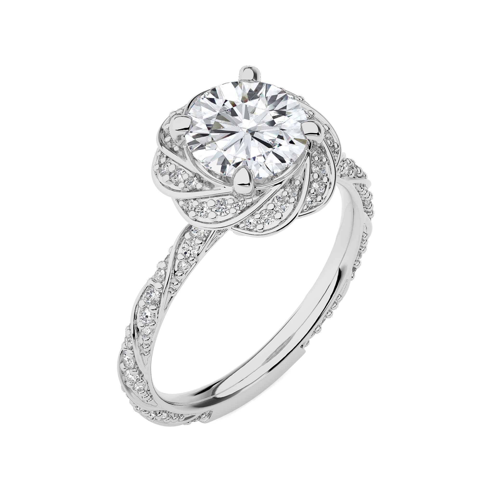 2 CT. Center Round Flower Style Twisted Rope Shank Natural Diamond Engagement Ring