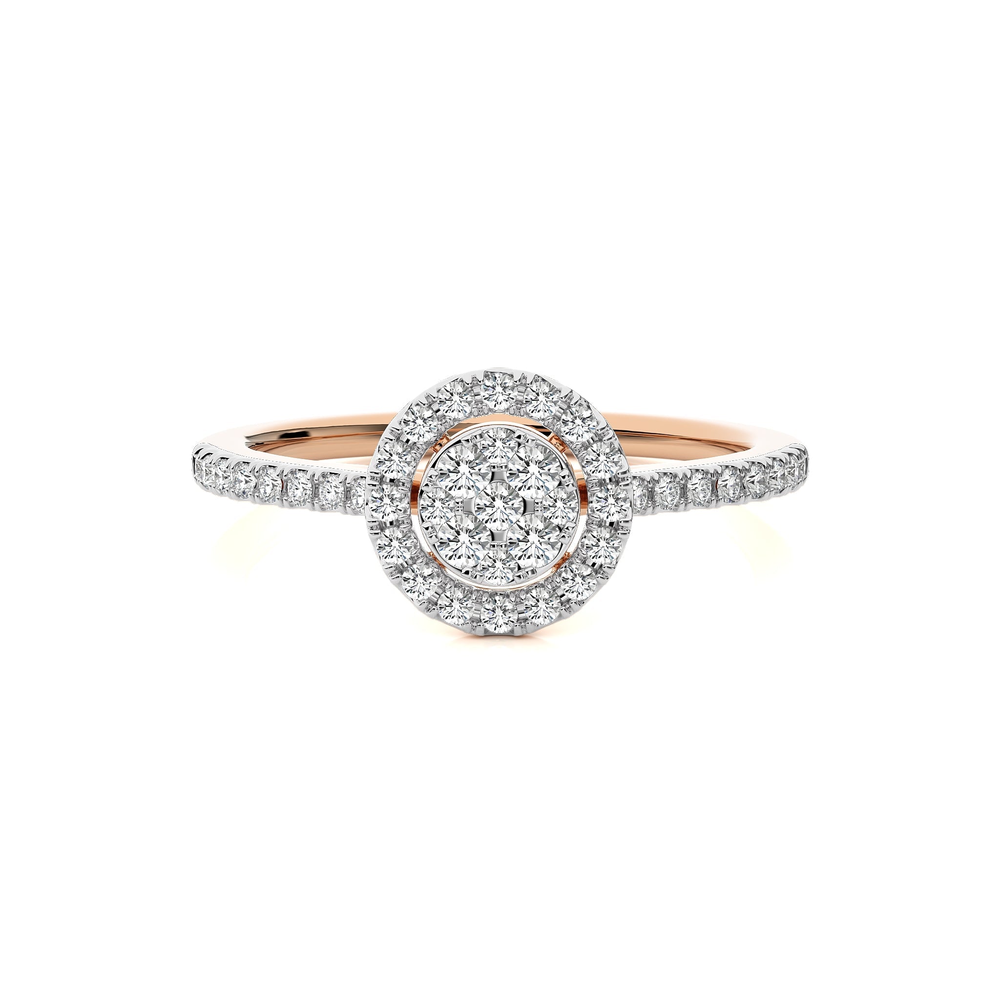 Captivate with this exquisite halo engagement ring, showcasing a brilliant 1/2 carat H-I/I1-I2 Natural Diamonds . Its micro Split and Pressure setting adds a touch of delicacy, making it a stunning symbol of your love and commitment
