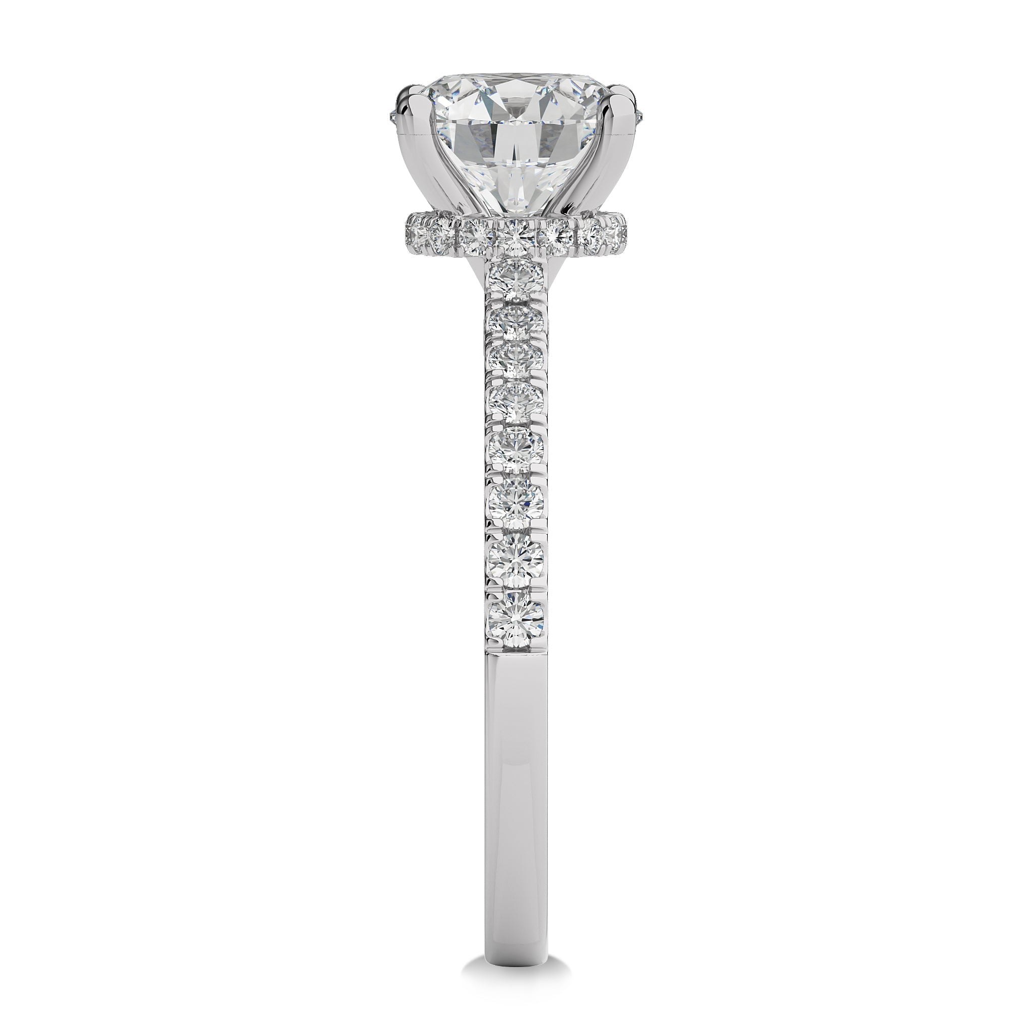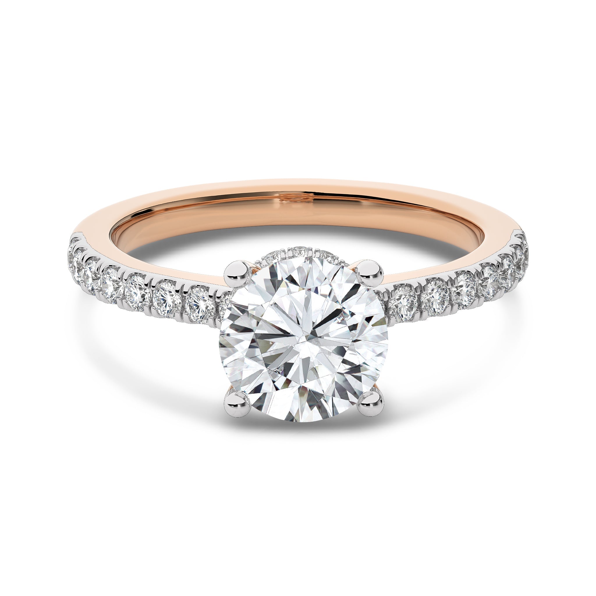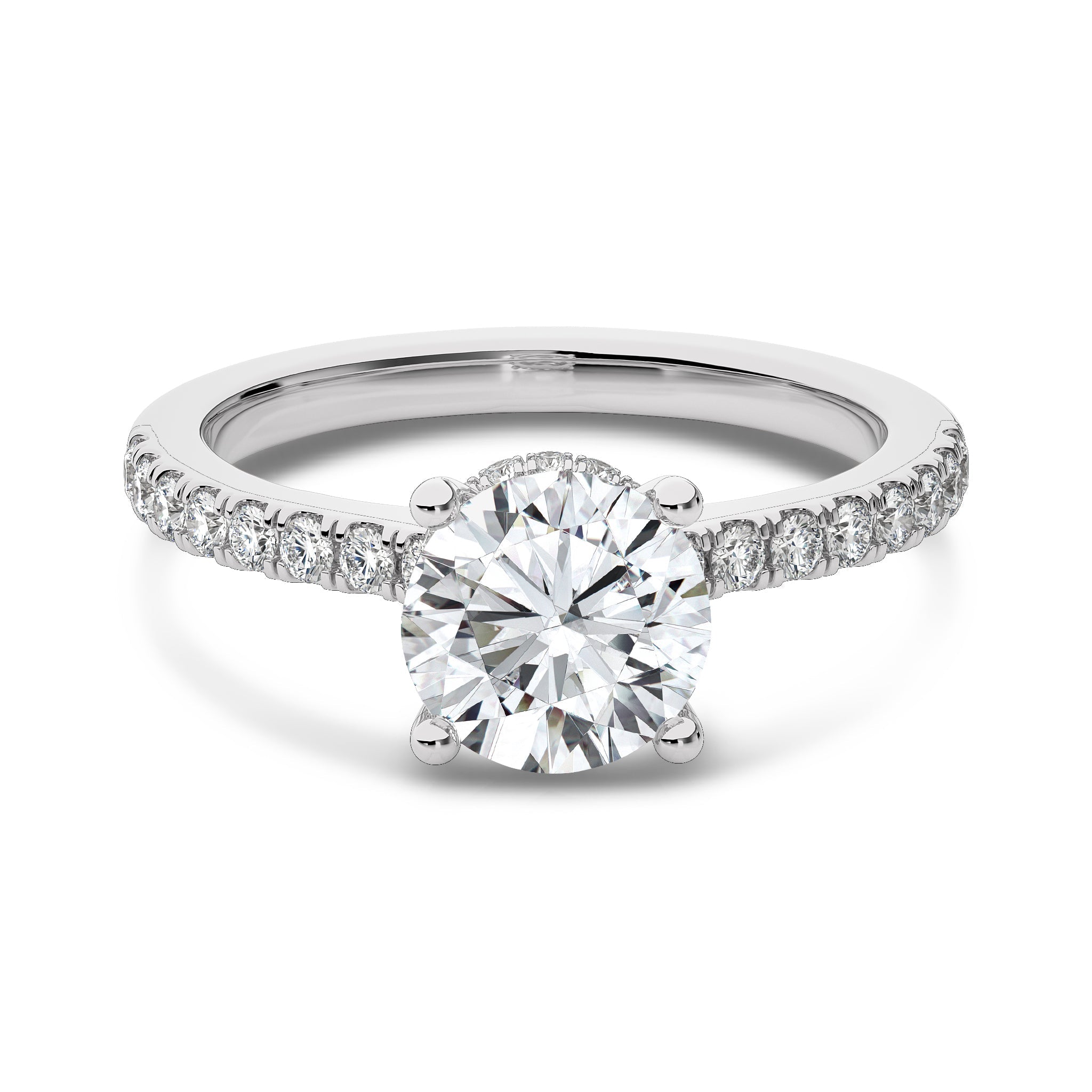 Ignite passion with this 1 3/4 CT. Round Natural Diamond Engagement Ring, designed with a prong setting and micro split accents that enhance its brilliance. Featuring H-I/I1-I2 quality diamonds, this breathtaking ring is the perfect symbol of your love and commitment, destined to capture hearts