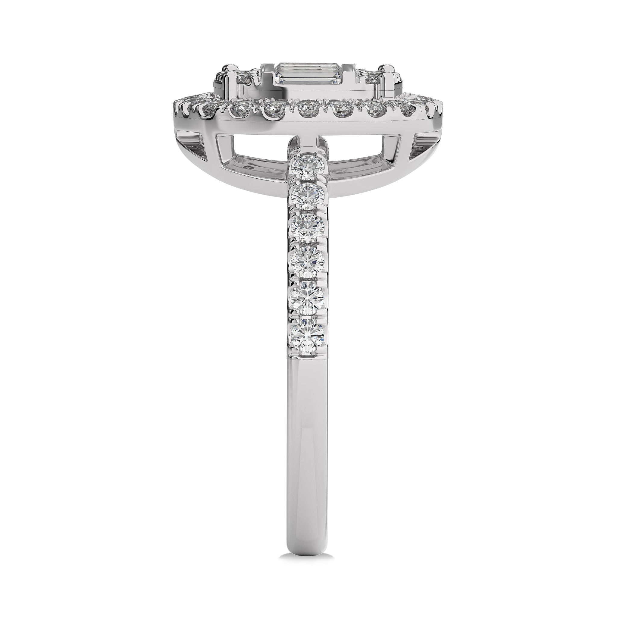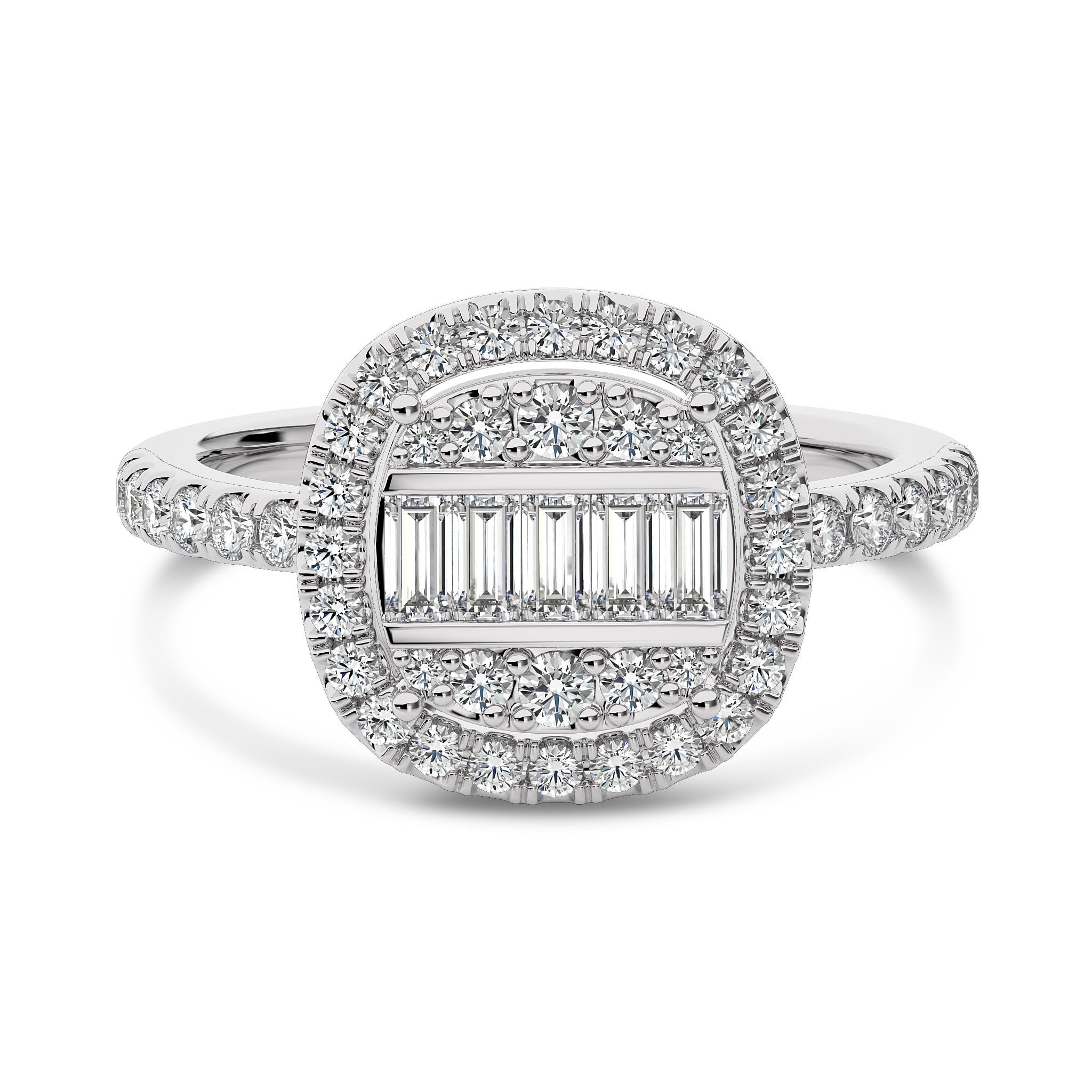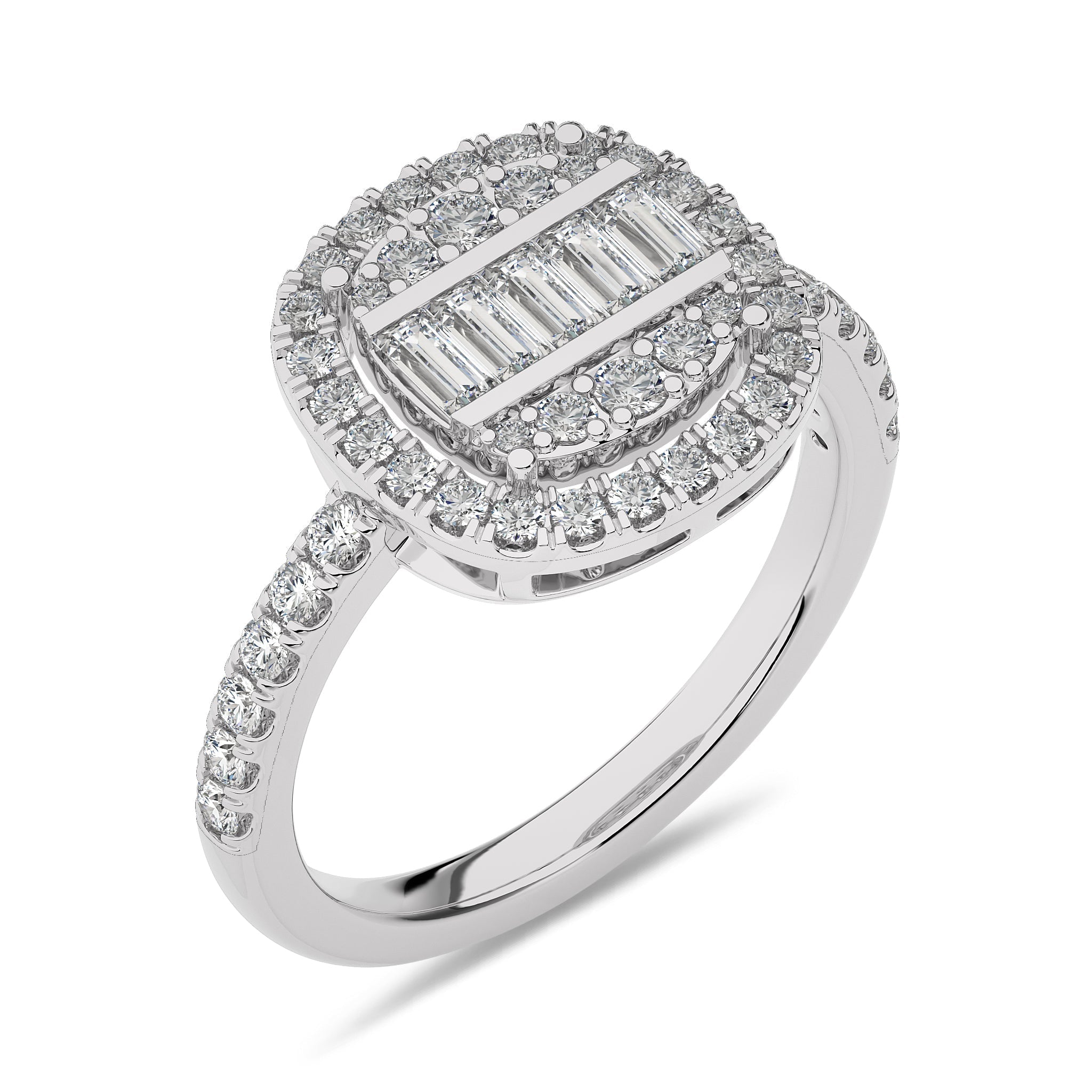1 CT. Cushion Shape Halo Design Round and Baguette Natural Diamond Ring