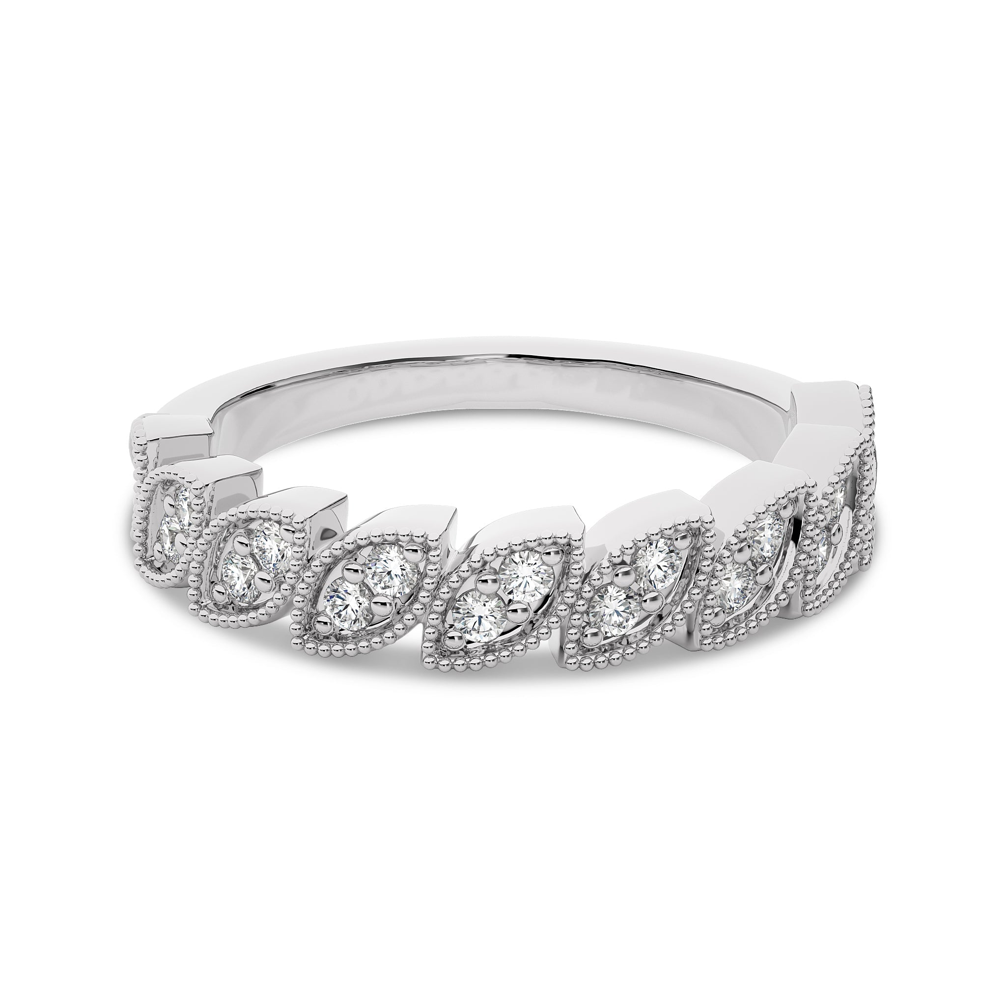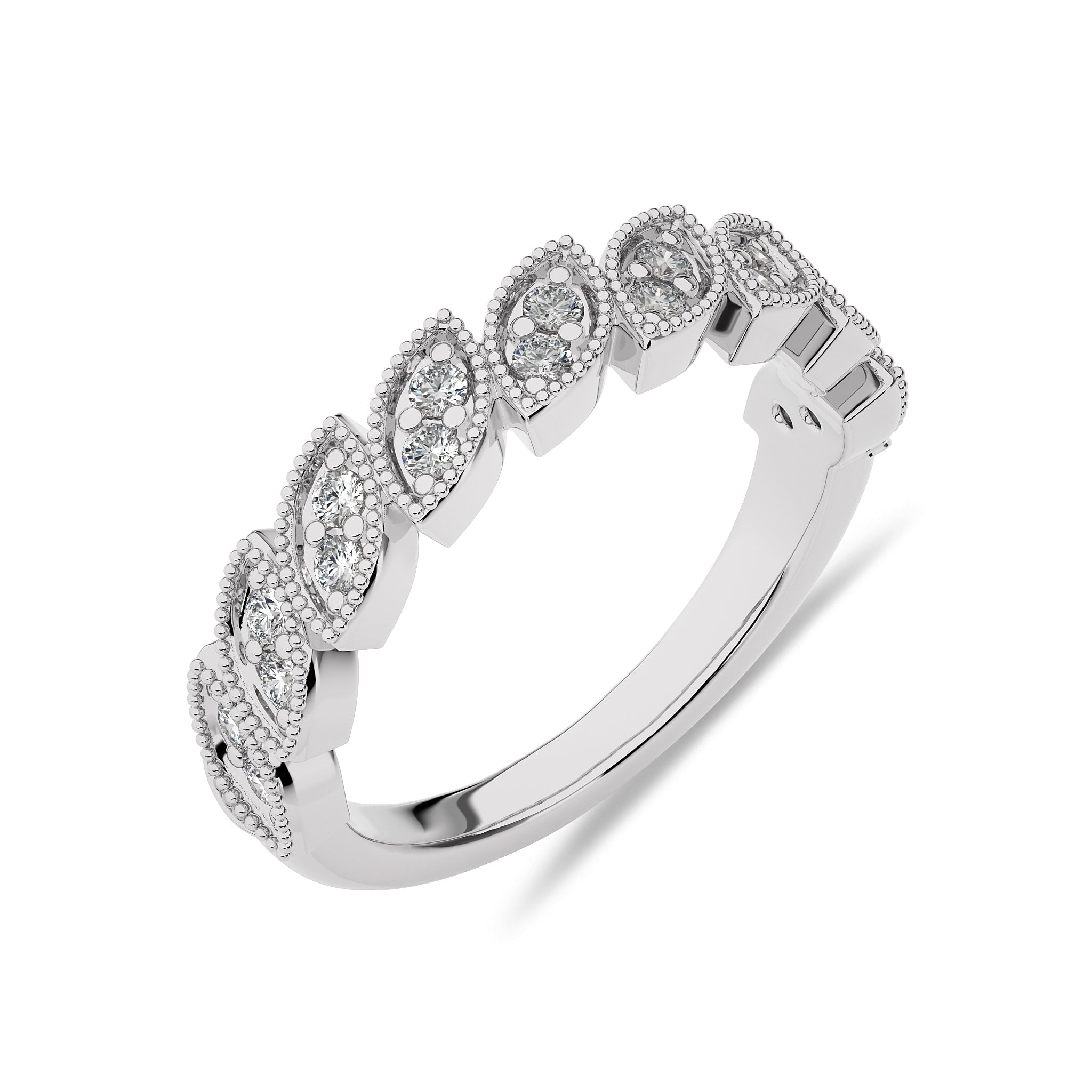Stand out with this 1/3 CT. Marquise Shape Round Natural Diamond Band Ring, featuring H-I/I1-I2 quality diamonds. Pave set for a radiant sparkle, this ring adds a touch of elegance and charm to any occasion