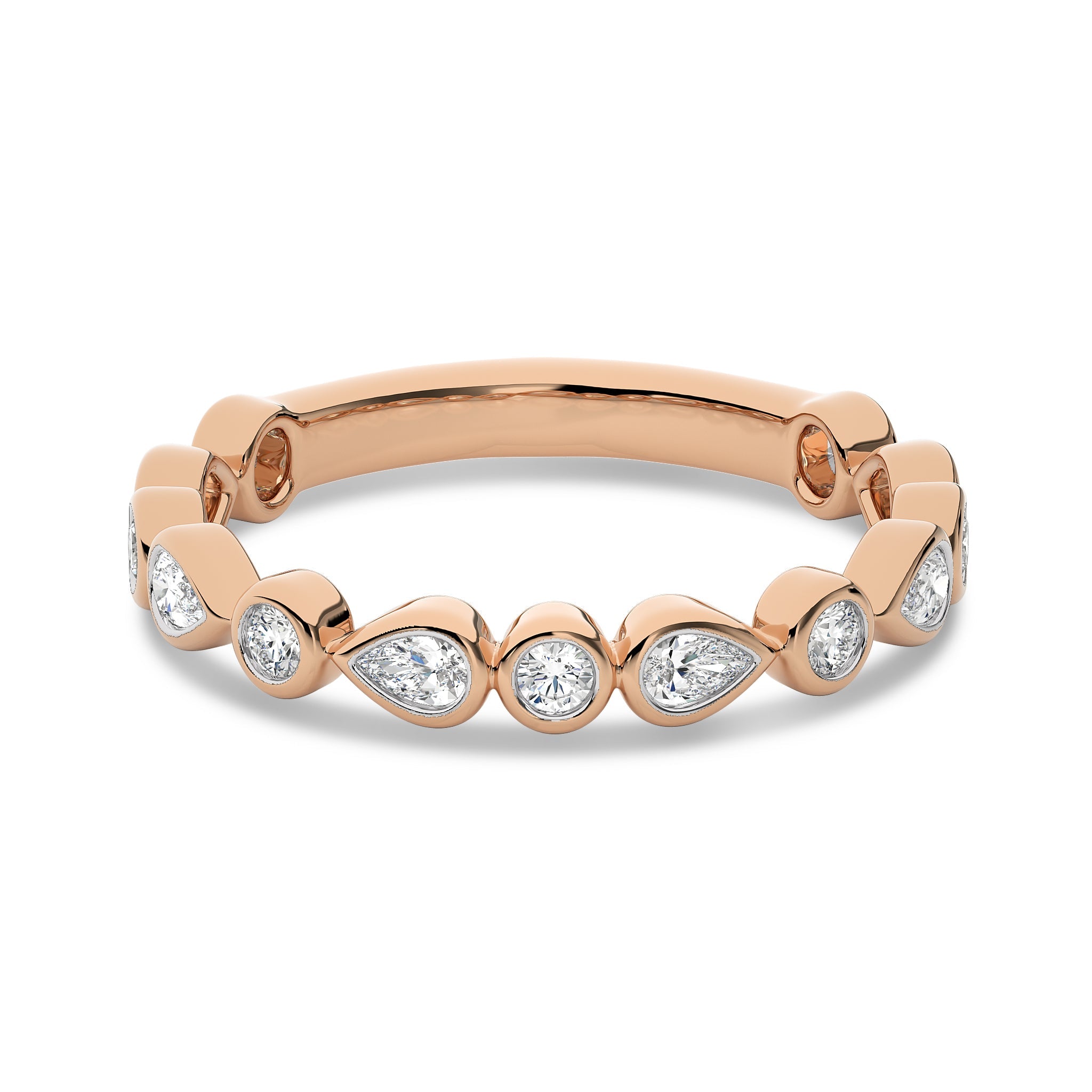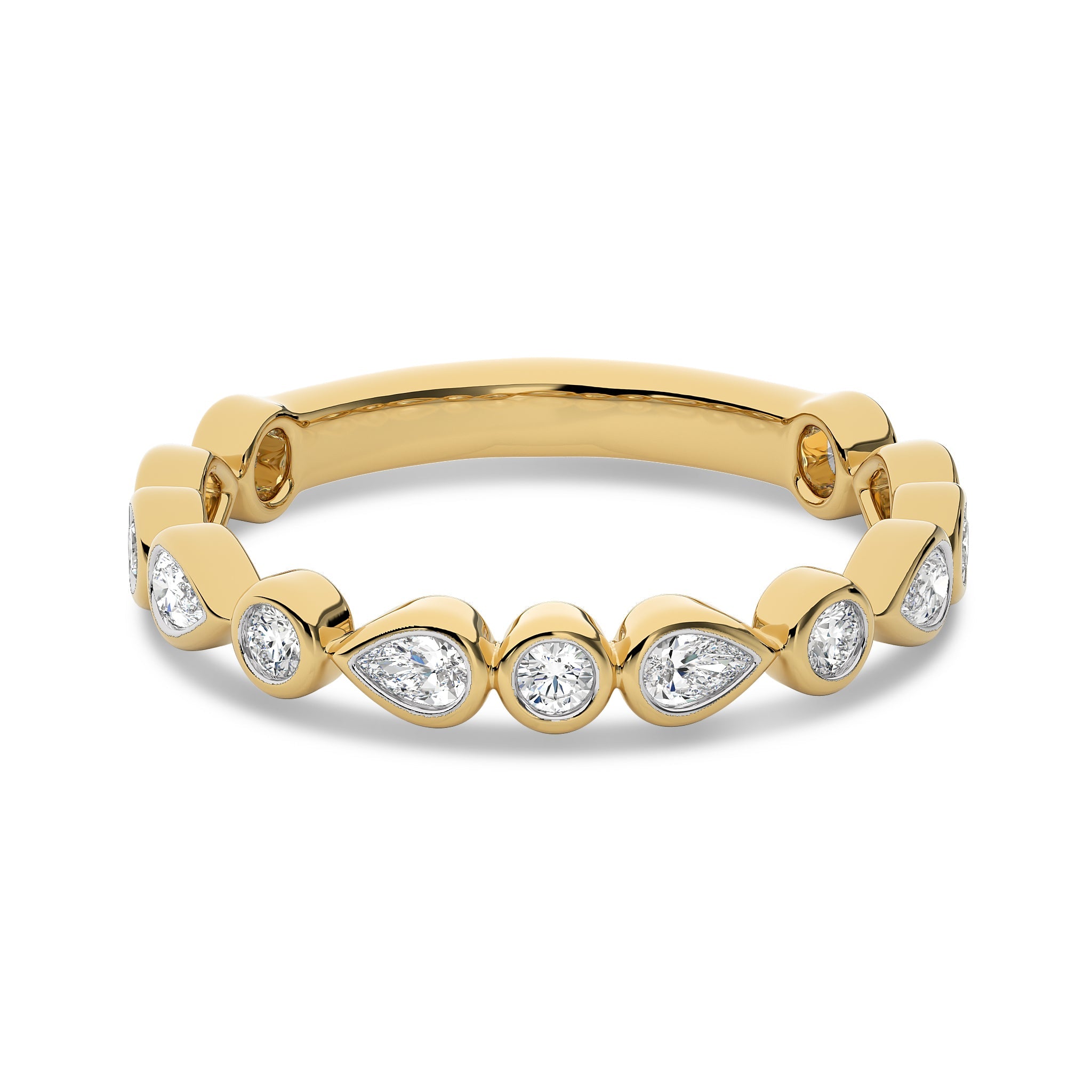 Turn heads with this 1/2 CT. Round and Pear Natural Diamond Band Ring, featuring H-I/I1-I2 quality diamonds. Bezel set for a sleek and modern look, this ring combines elegance with distinctive charm. An ideal piece to enhance any outfit