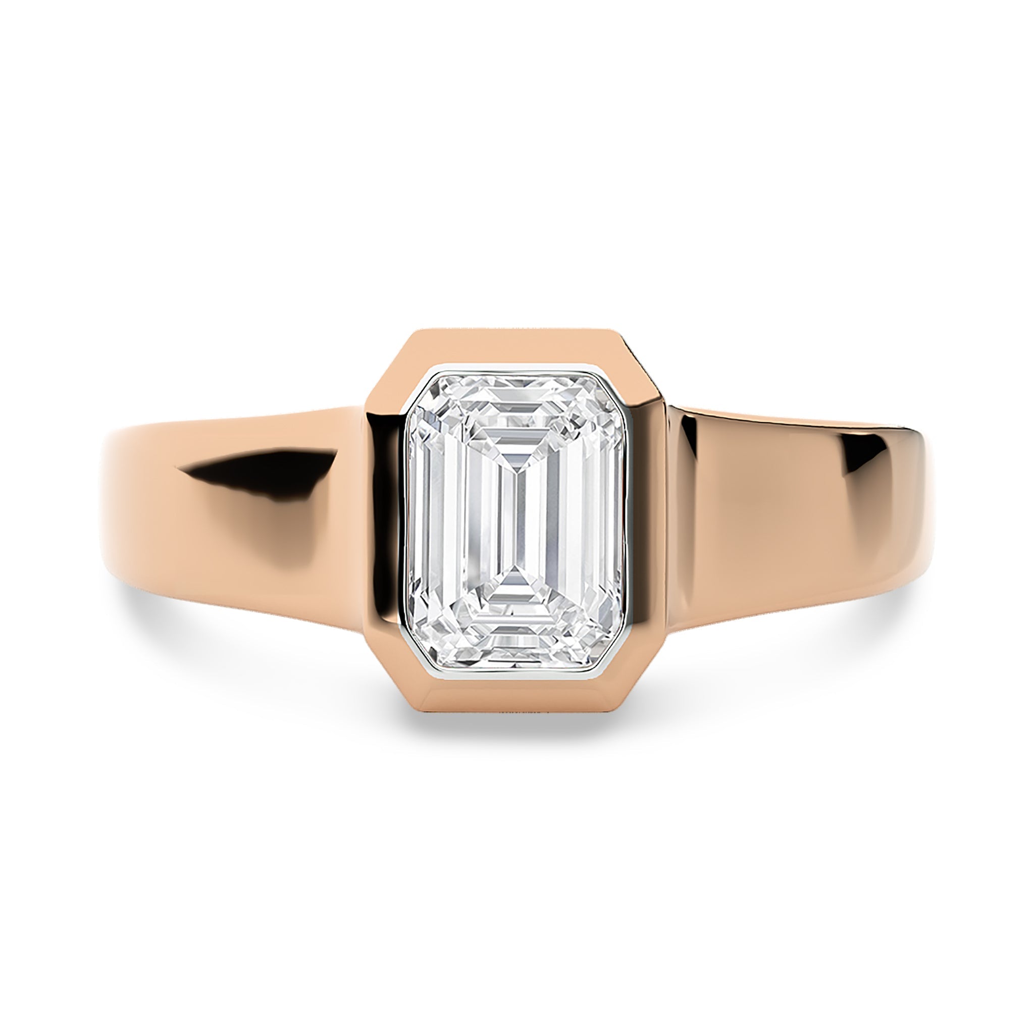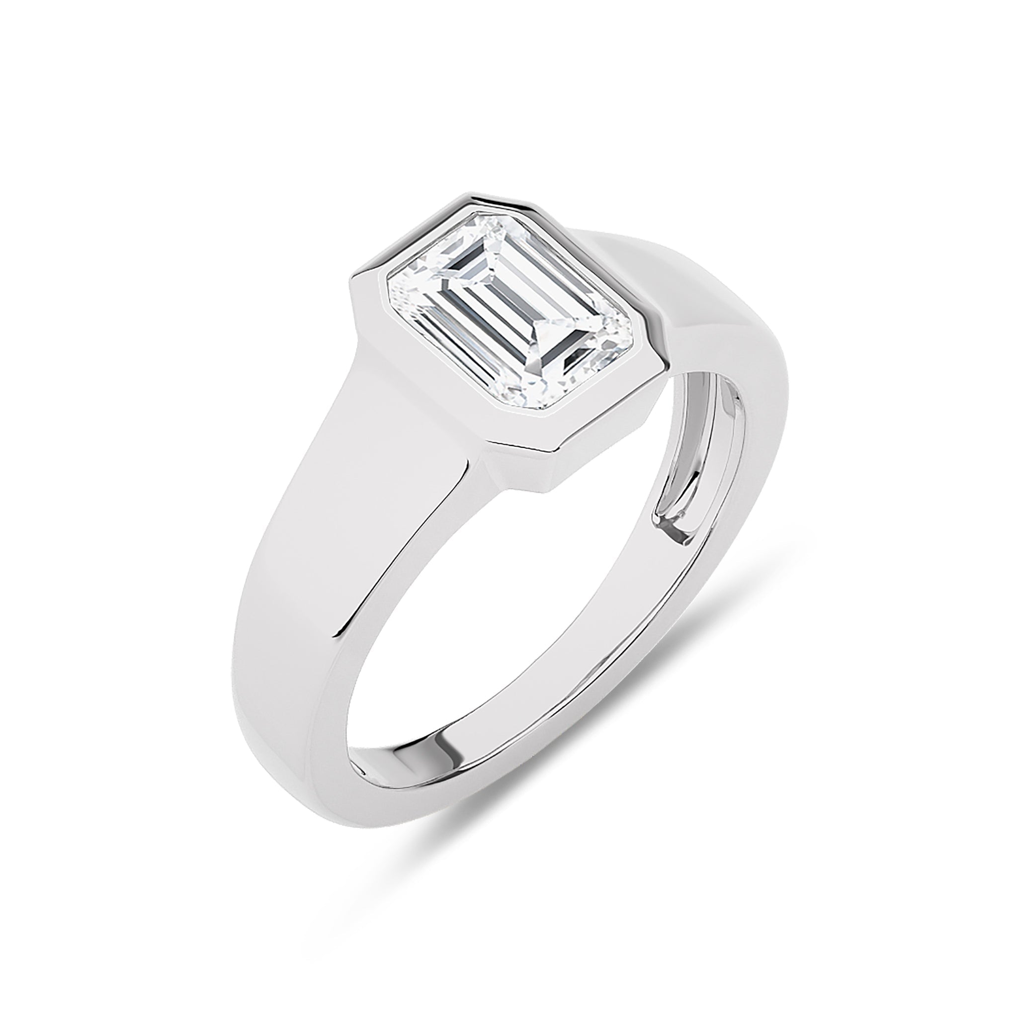 1 1/2 CT. Emerald Cut Bezel Set Natural Diamond Engagement Ring