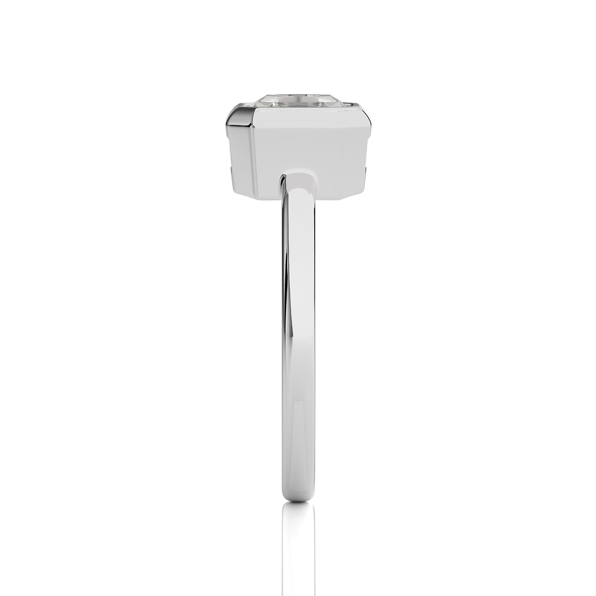 Elegantly featuring a stunning 1 1/2 carat Asscher shaped lab created diamond, this engagement ring is a testament to bespoke elegance. With DEF/SI quality and a secure bezel setting, Make this unique ring the centerpiece of your unforgettable moments