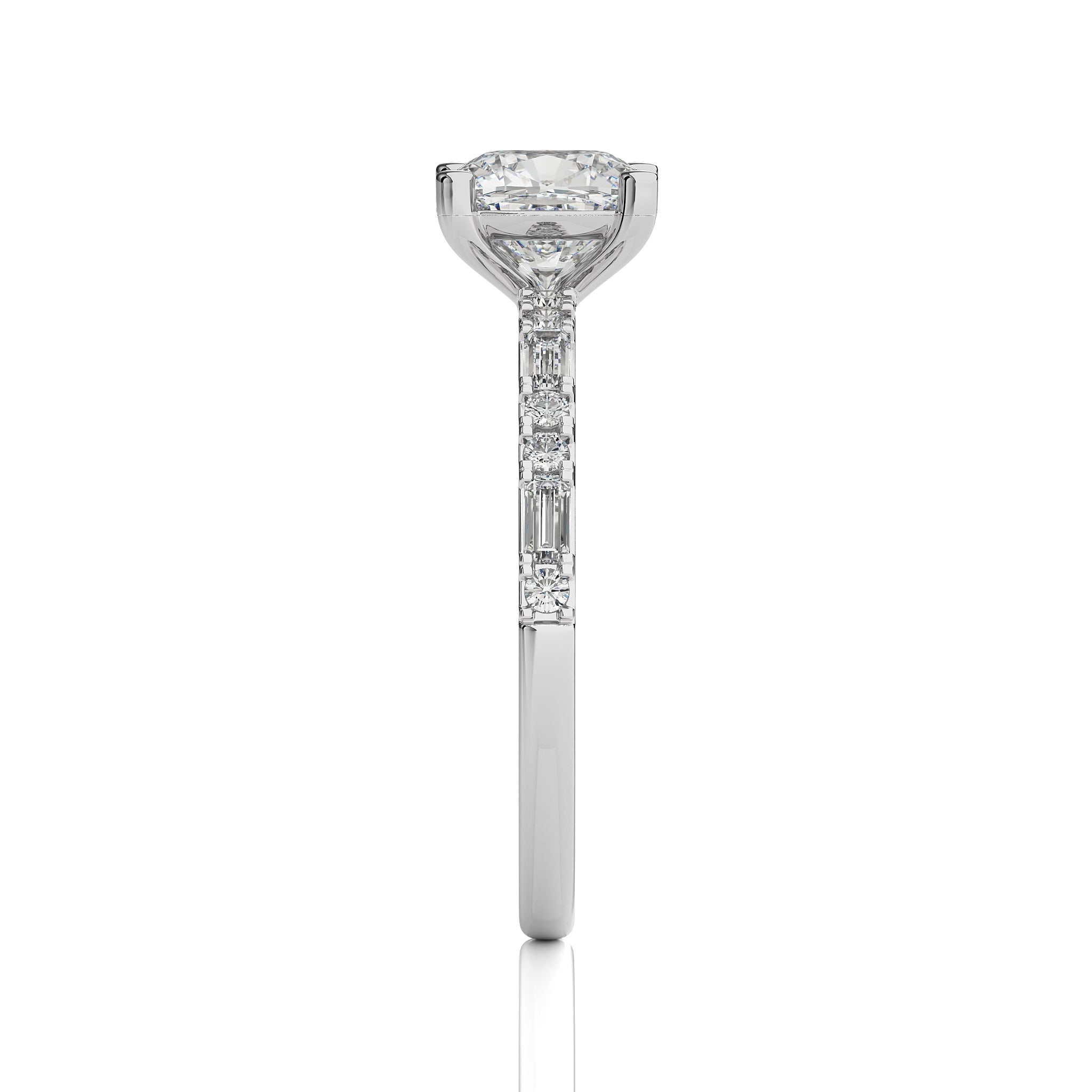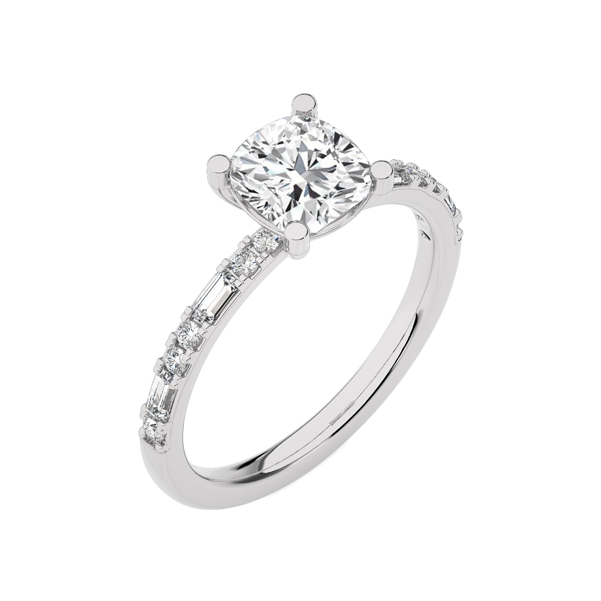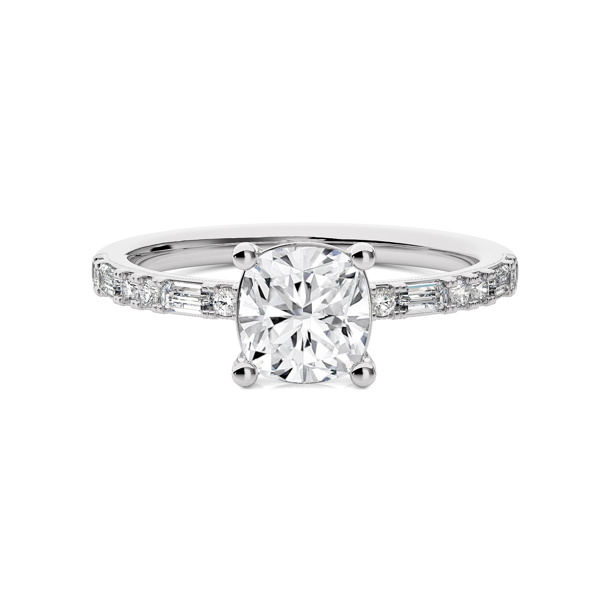 1 3/4 CT. Starlight Cushion Radiance Baguette and Round Natural Diamond Engagement Ring