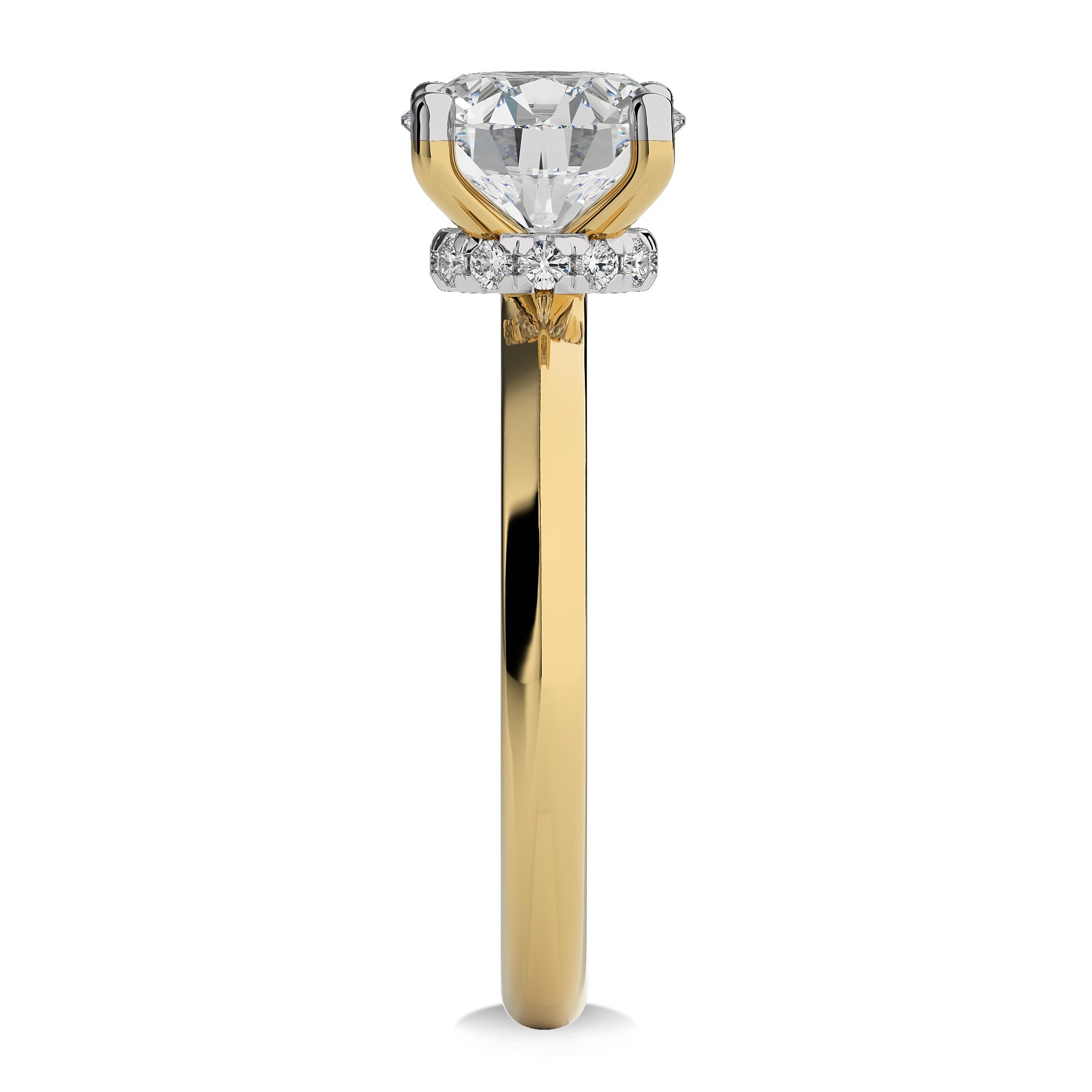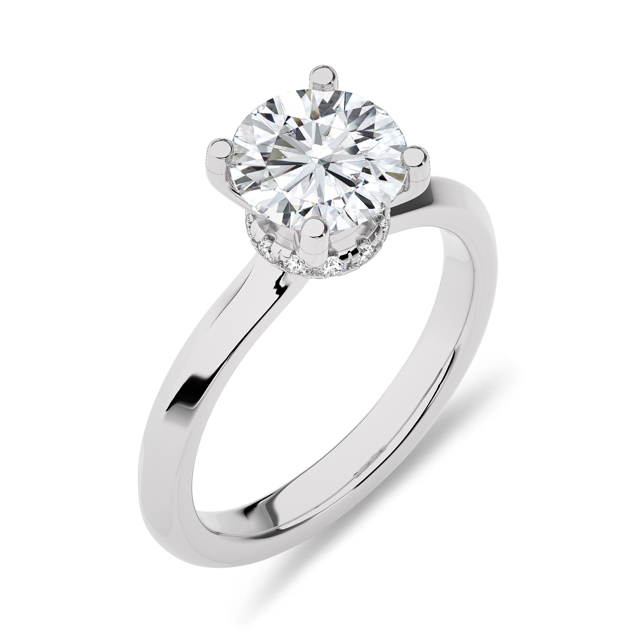 Magnify your style with the brilliance of this magnificent 2 carat round solitaire natural diamond engagement ring. The hidden halo adds a touch of intrigue, while the knife-edge shank provides a modern flair. Set in prong and micro-split settings, the H-I color, I1-I2 clarity diamonds ensure exceptional sparkle. Make a lasting impression with this stunning ring on special occasions