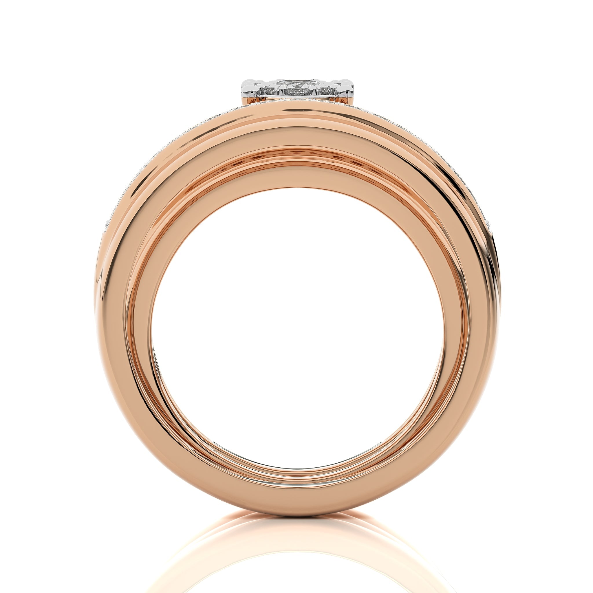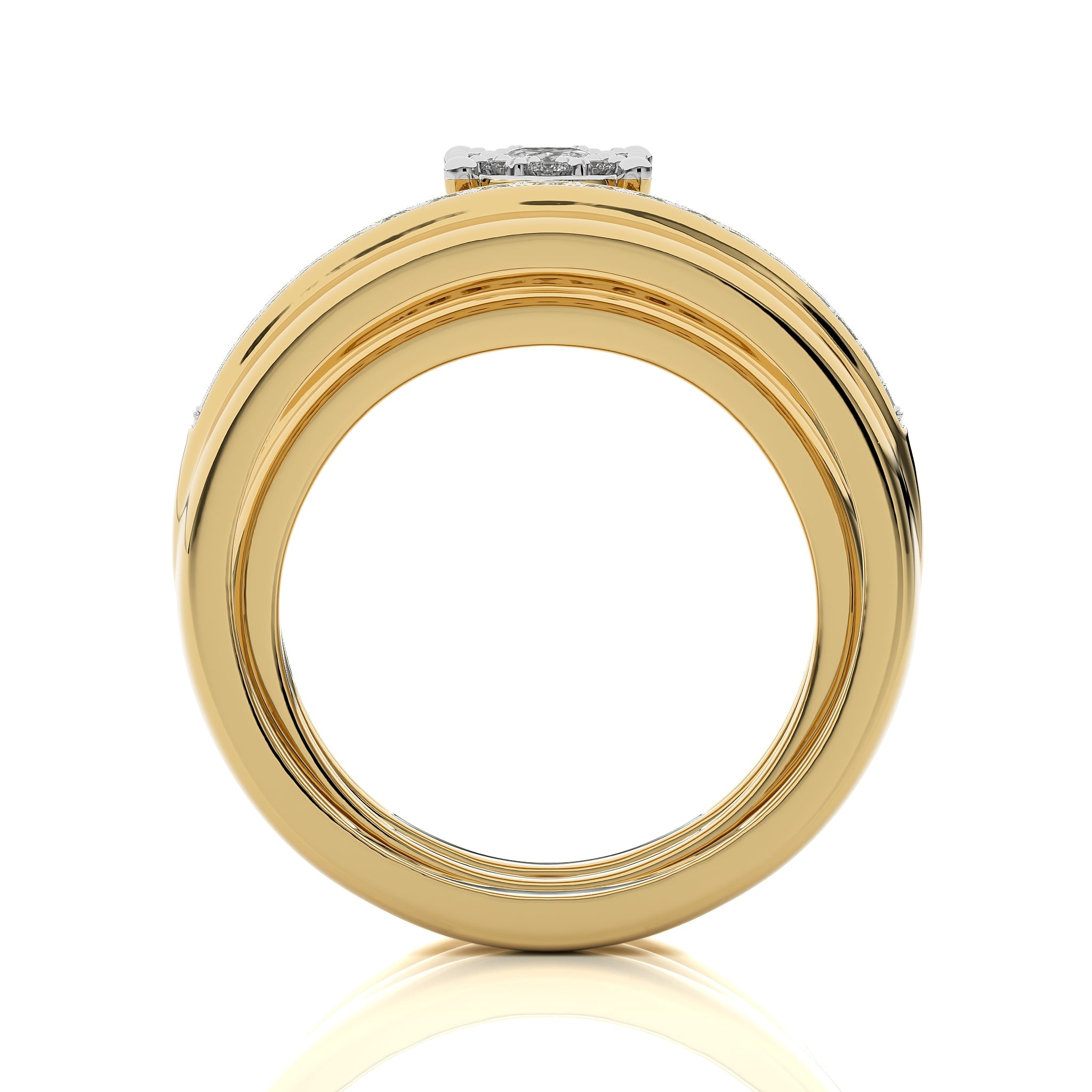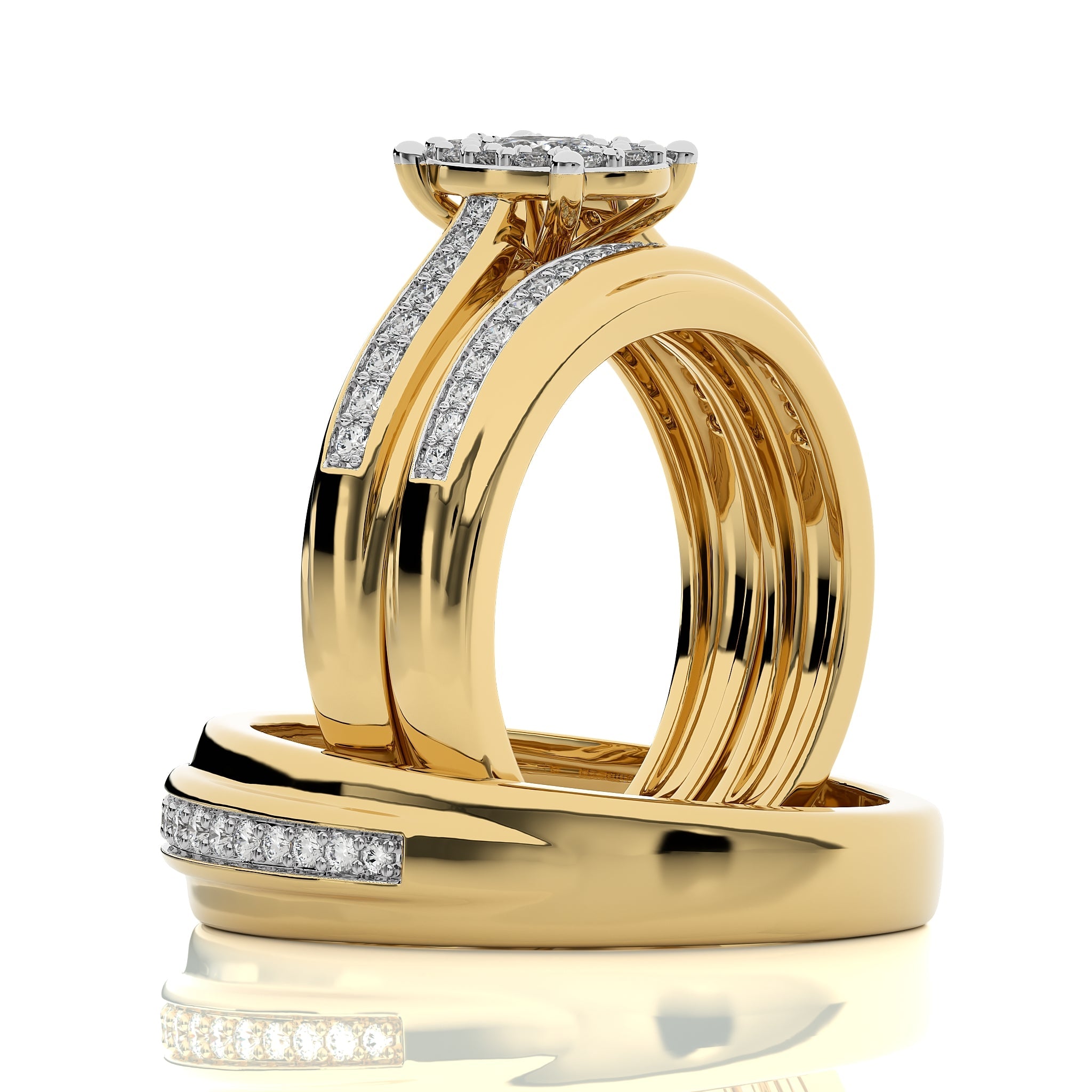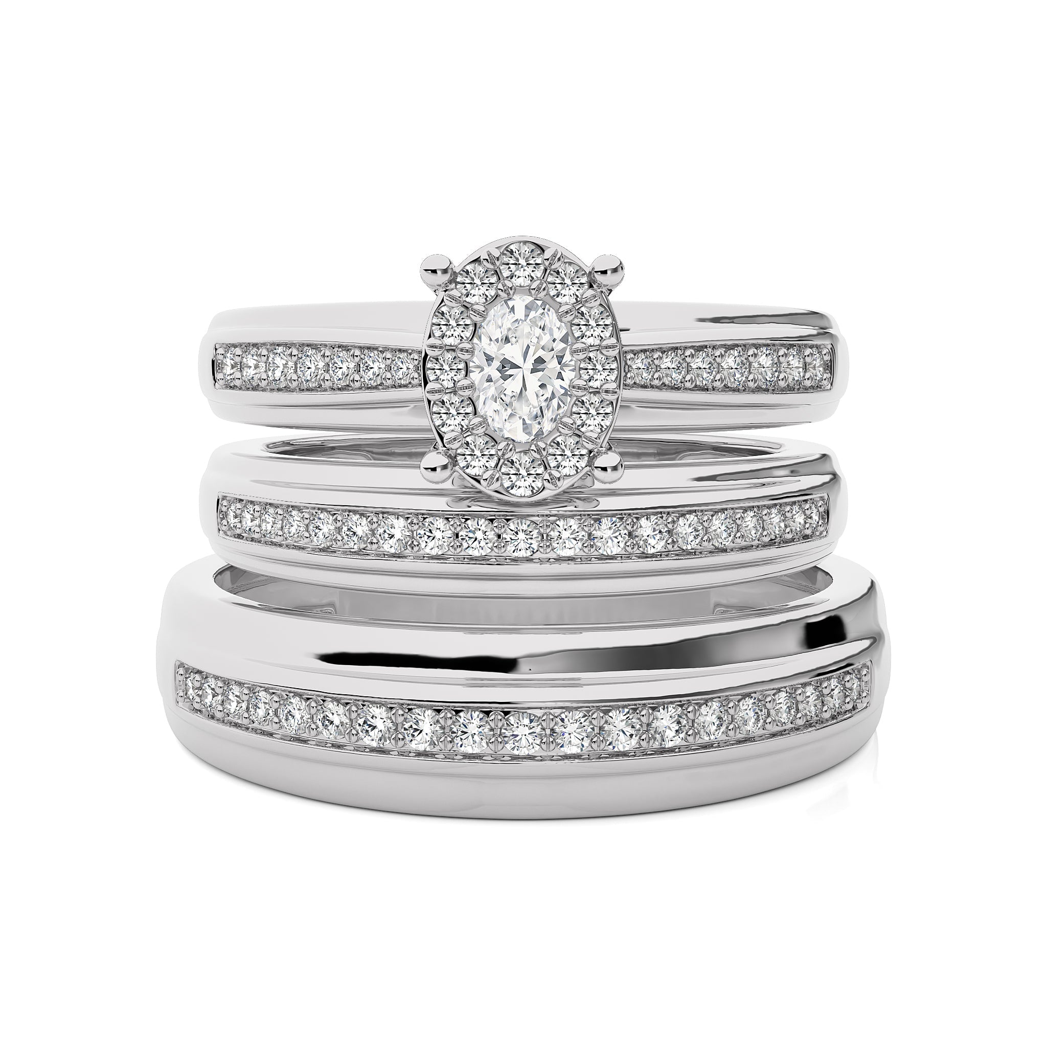 Mark your everlasting love with this beautiful 3/4 CT. his and her wedding trio band ring set. Crafted with H-I/I1-I2 quality oval shape and round natural diamonds, elegantly set in a micro split setting, this set captures the essence of your enduring commitment