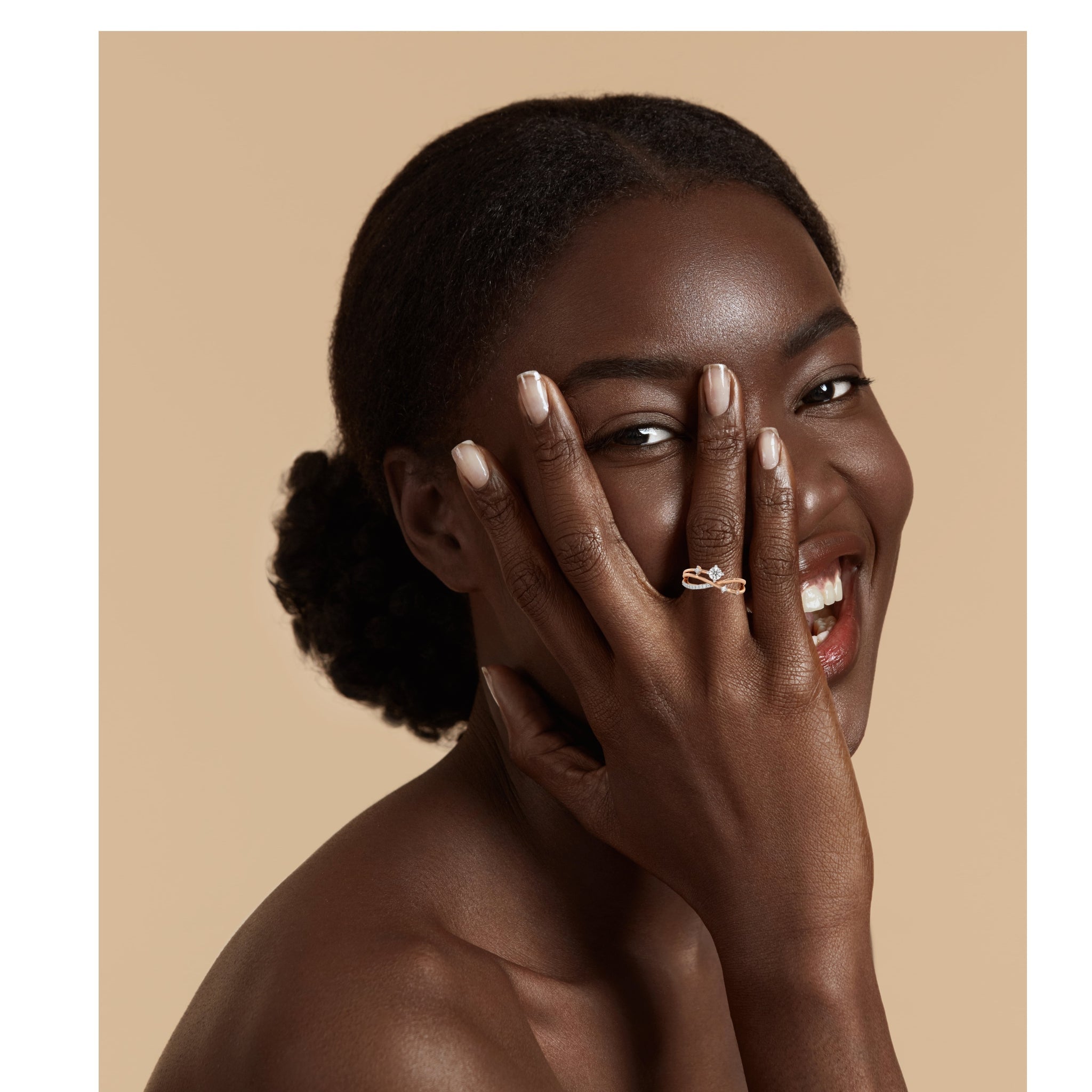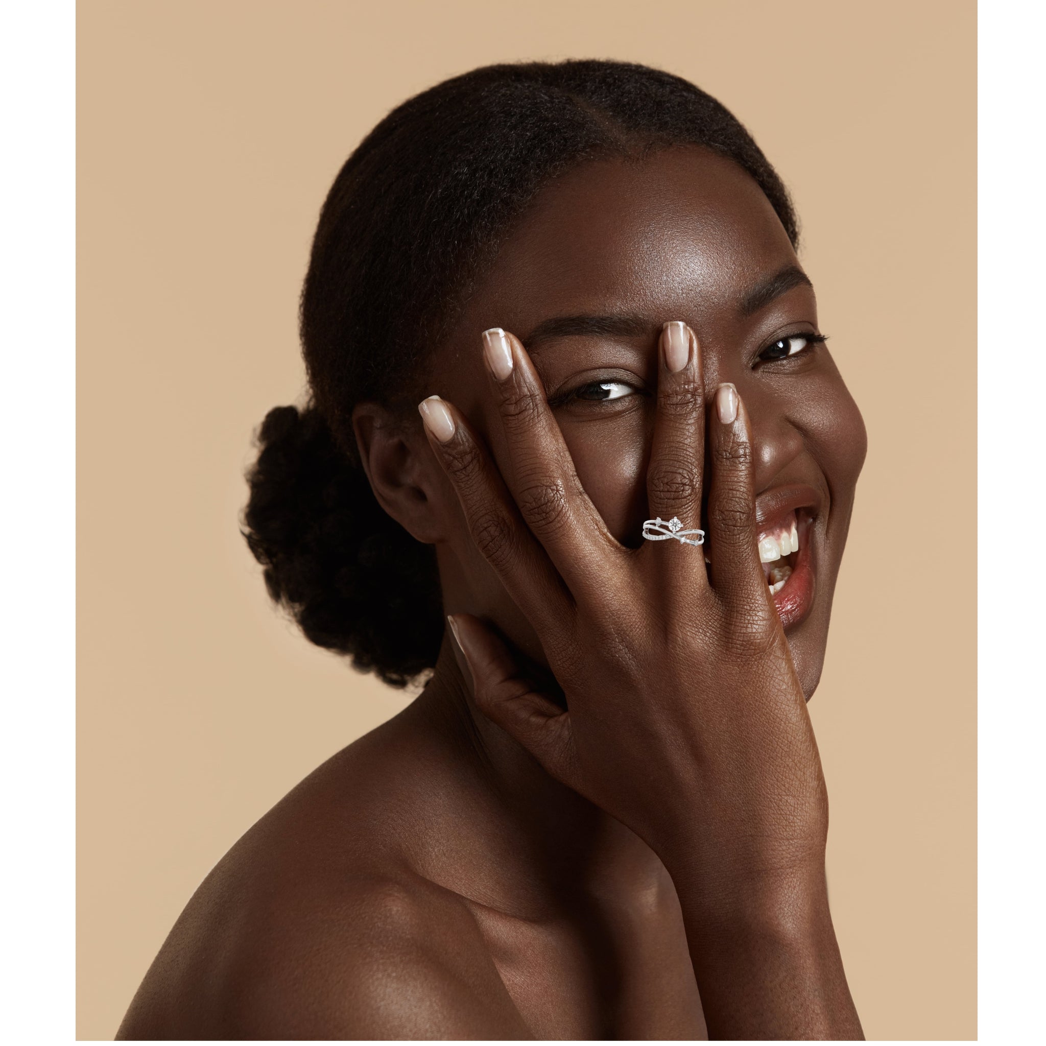 Celebrate elegance with this 1/3 CT. Princess and Round Lab Created Diamond Cross Over Ring, featuring DEF/SI quality diamonds in bezel and prong settings. A stunning blend of classic and modern design