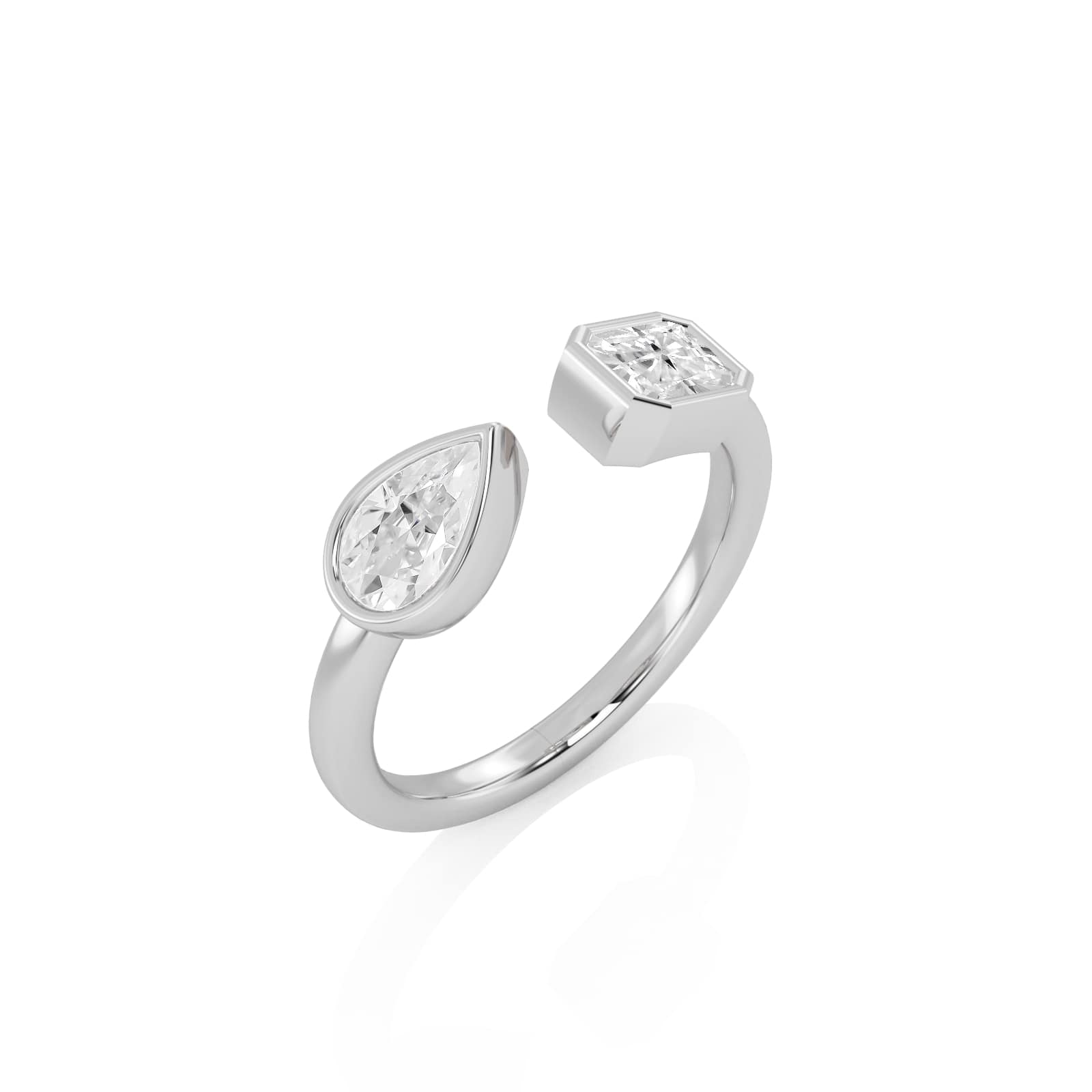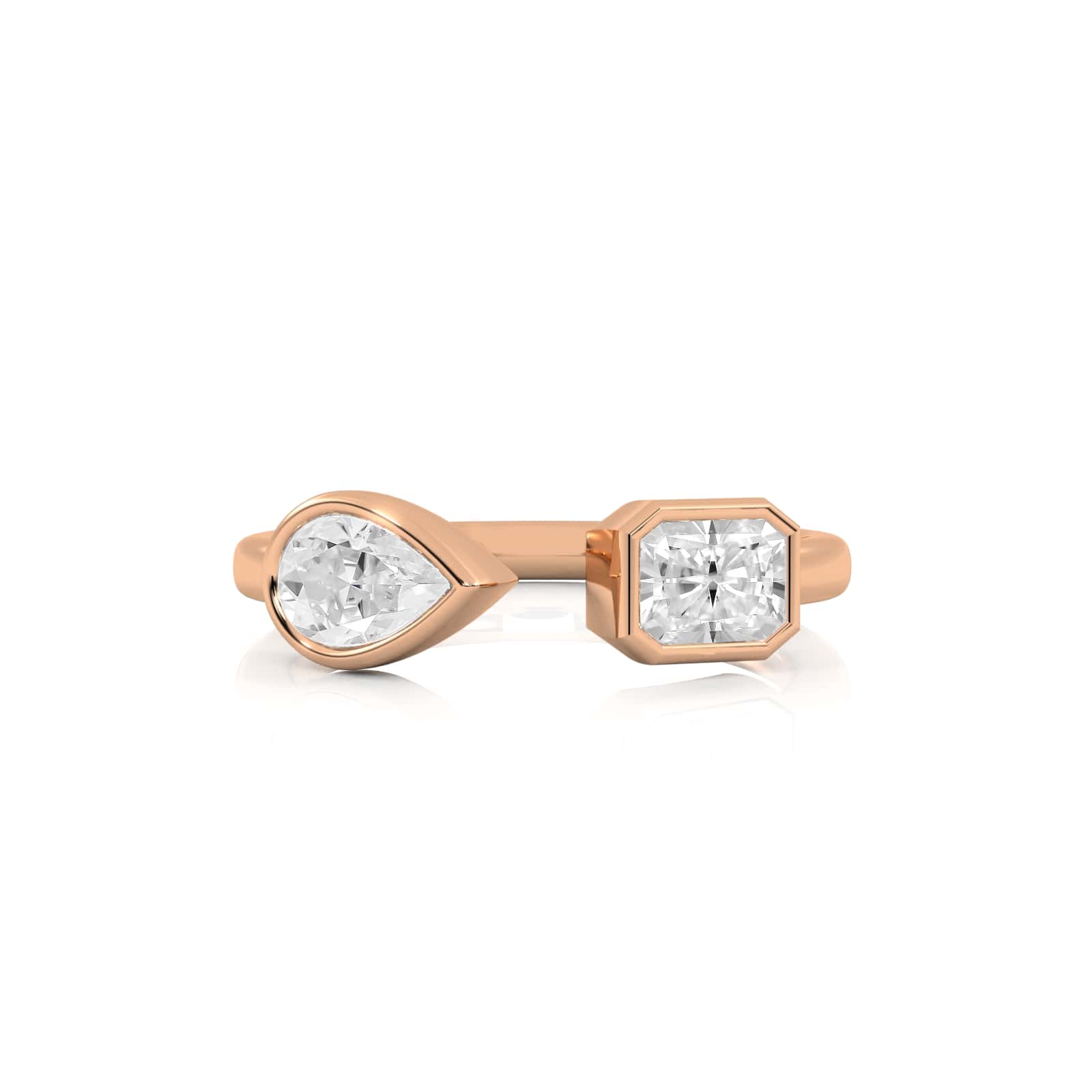 1 CT. Pear and Emerald Cut Bezel Set Natural Diamond Two Stone Engagement Ring