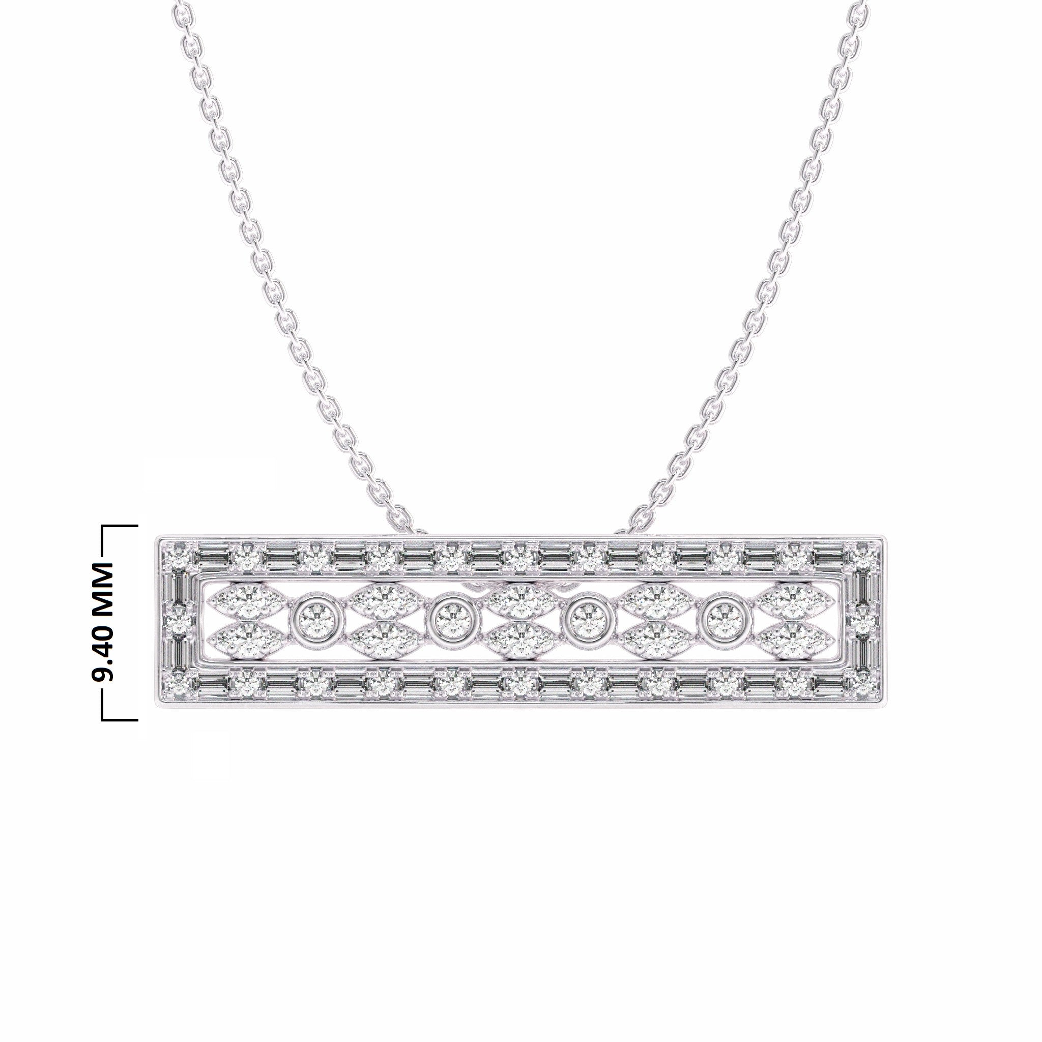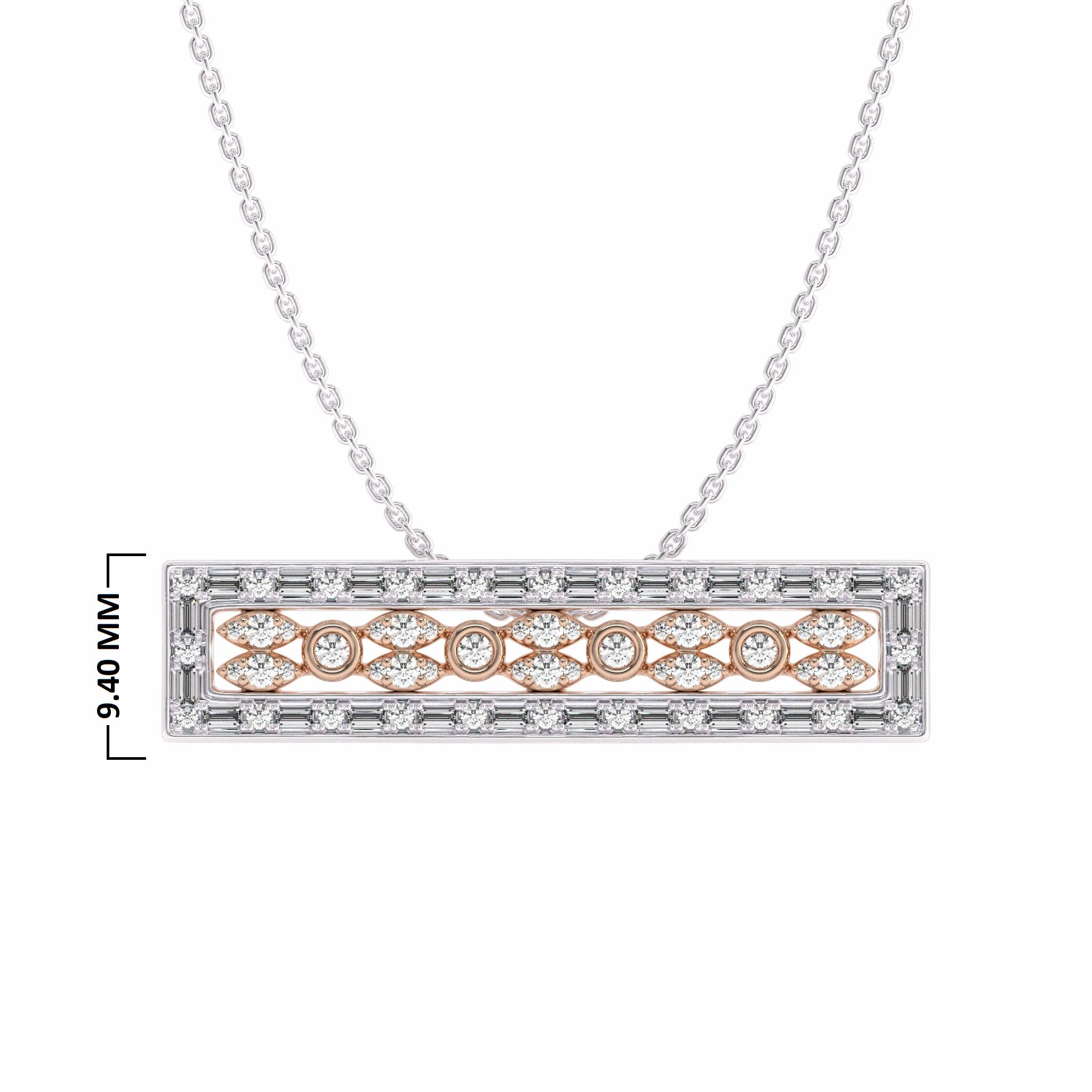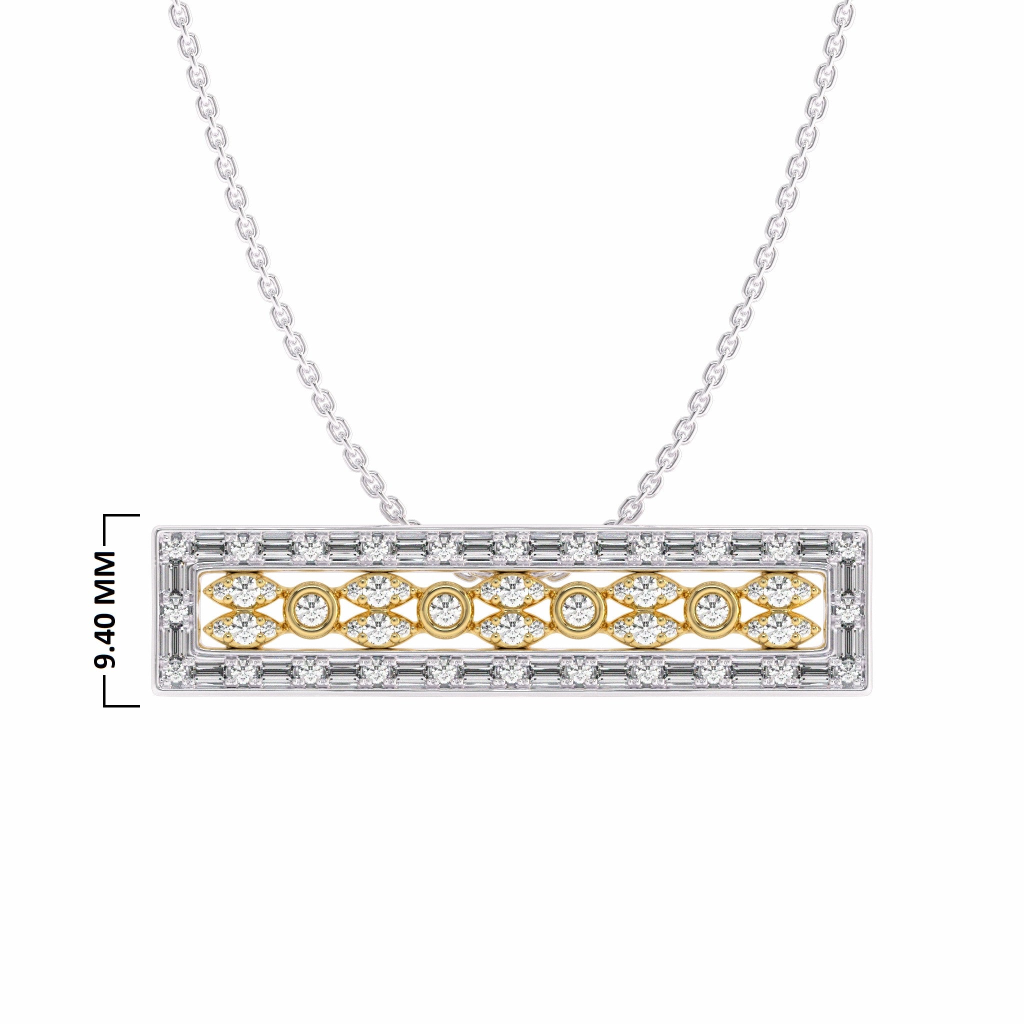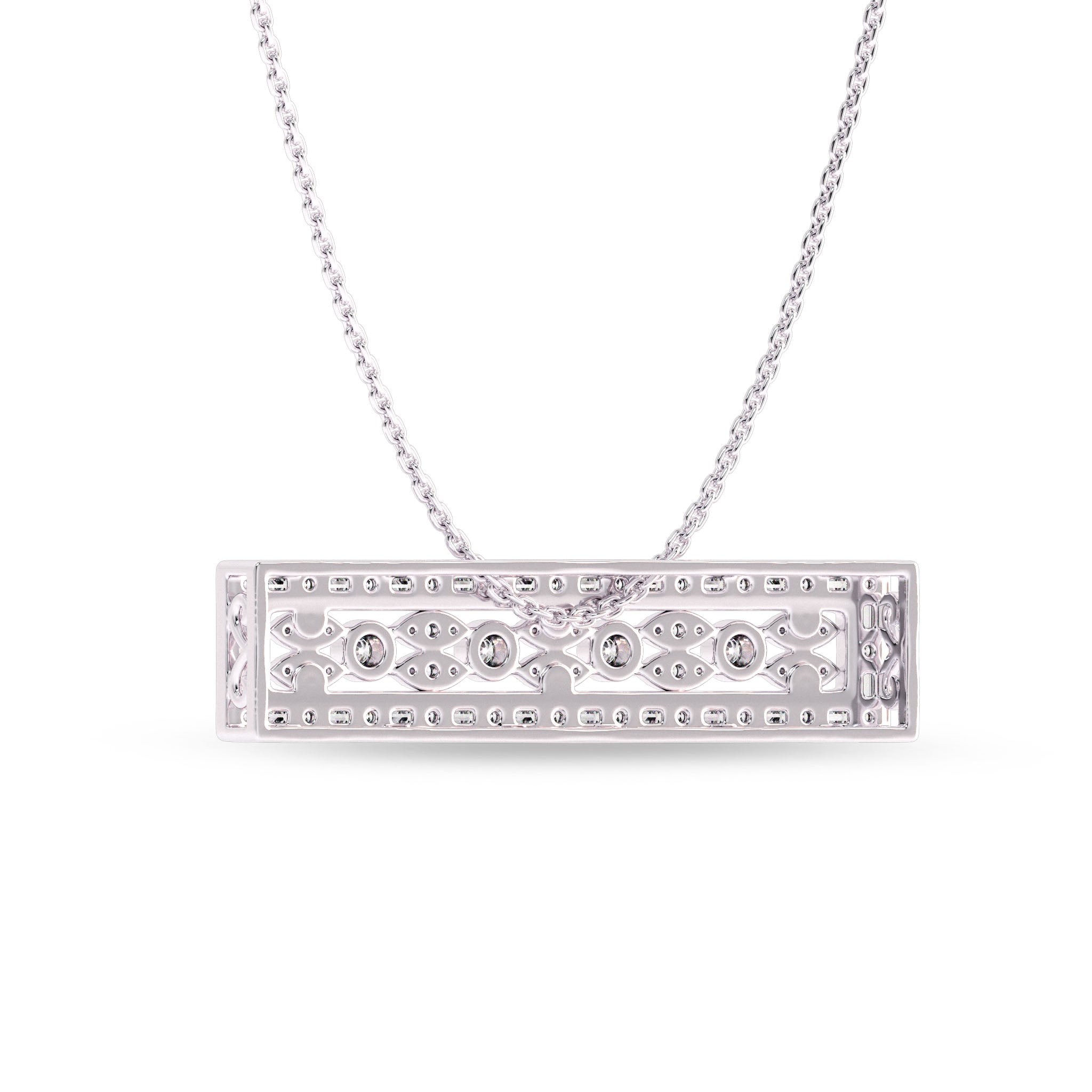 Adorn your neckline with our 1 CT. Natural Round and Baguette Diamond Studded Designer Bar Necklace, a unique masterpiece of elegance. Featuring the mesmerizing interplay of G-H/VS-SI diamonds in micro split, pave, bezel, and prong settings, this necklace is a symbol of your distinctive style and sophistication, showcasing the artistry of love and luxury.