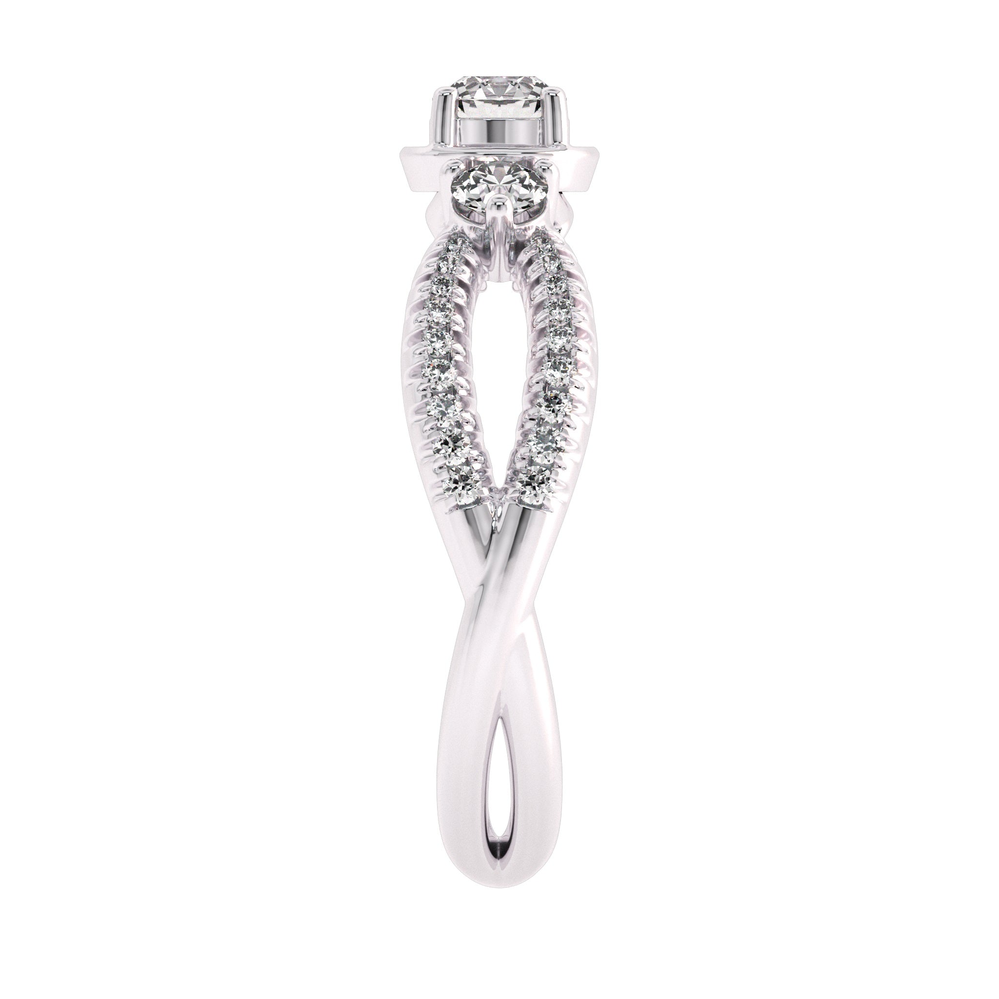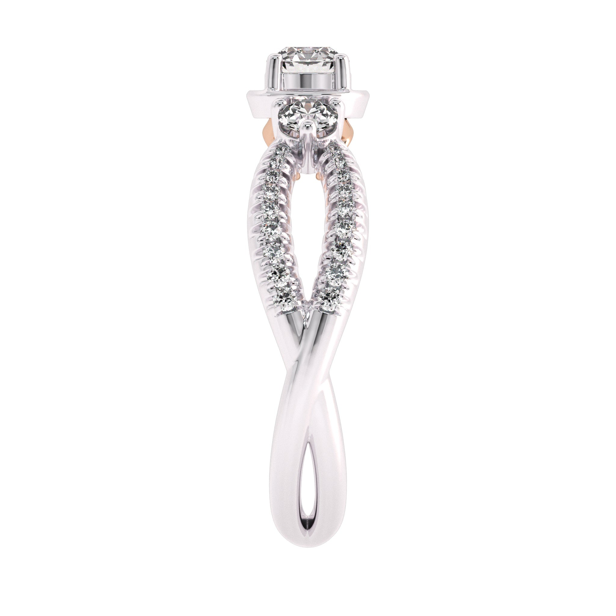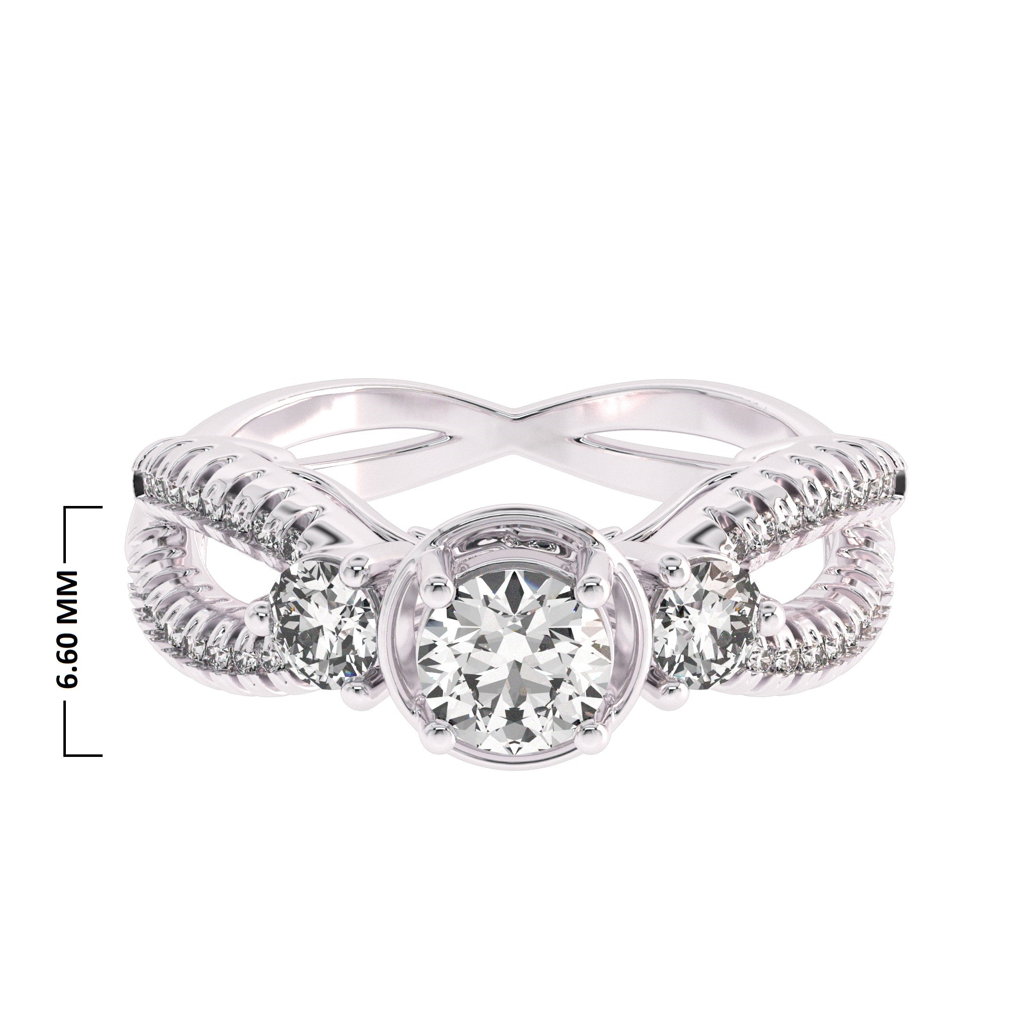 Presenting our stunning 5/8 carat Three Stone Style Two Tone Engagement Ring, featuring DEF/SI quality lab created diamonds expertly set in a micro split and prong setting. This engagement ring is sure to capture the heart of your beloved and become a cherished symbol of your enduring commitment