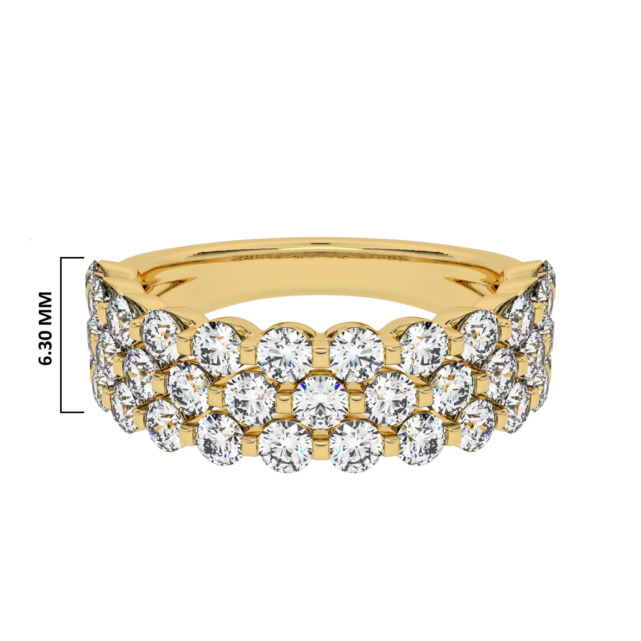 This magnificent 1 1/2 Carat Tripple Row Half Eternity Band is a true testament to timeless beauty. The DEF/SI quality lab-created diamonds are expertly set in a prong setting, accentuating their brilliance and fire. Perfect for adding a touch of elegance to any outfit, this band is a true classic
