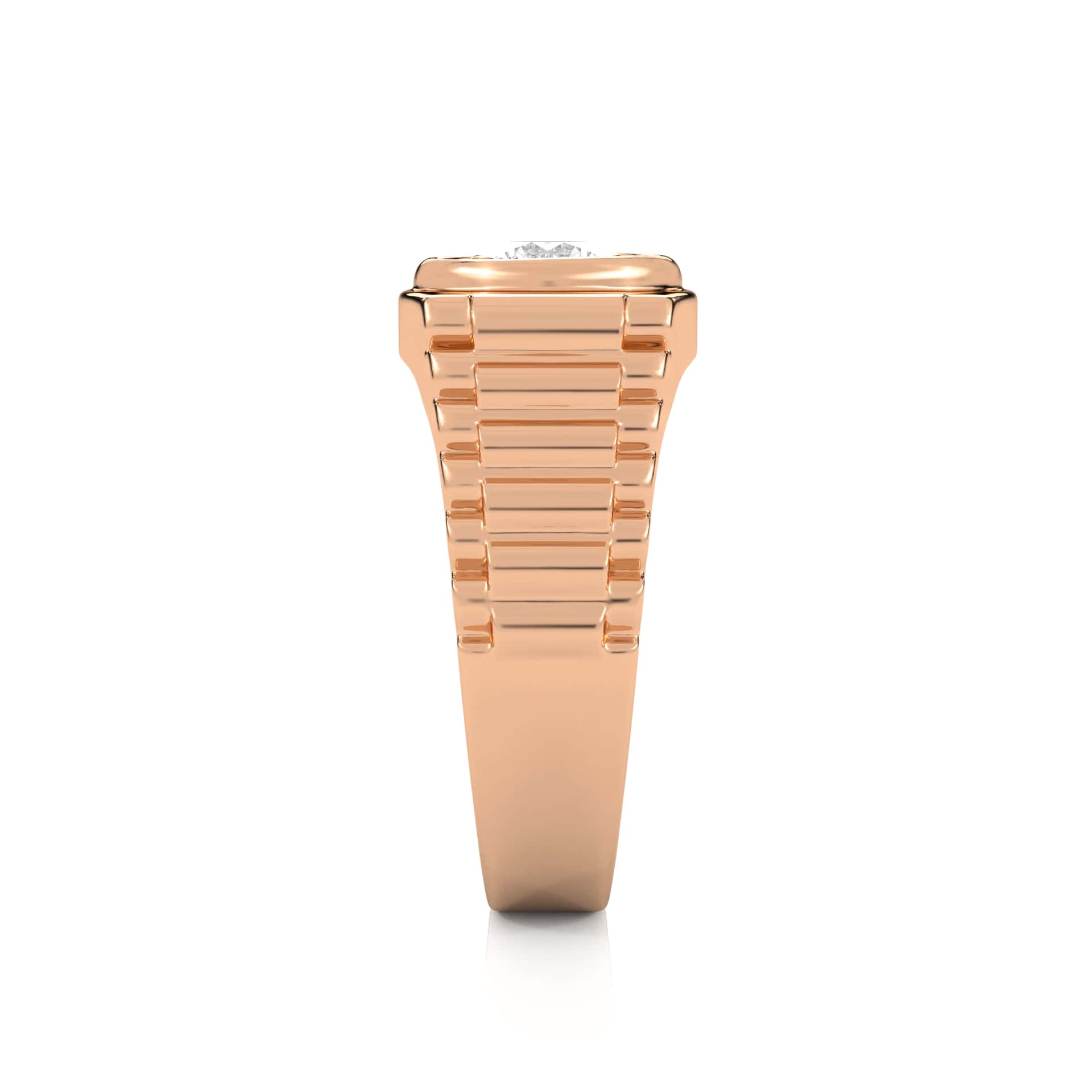 Refined and powerful, this men's ring features a 3/4 CT. round Lab Created diamond in a sleek pave setting. With DEF/SI quality, it combines bold design with understated elegance, making it the perfect symbol of strength and style