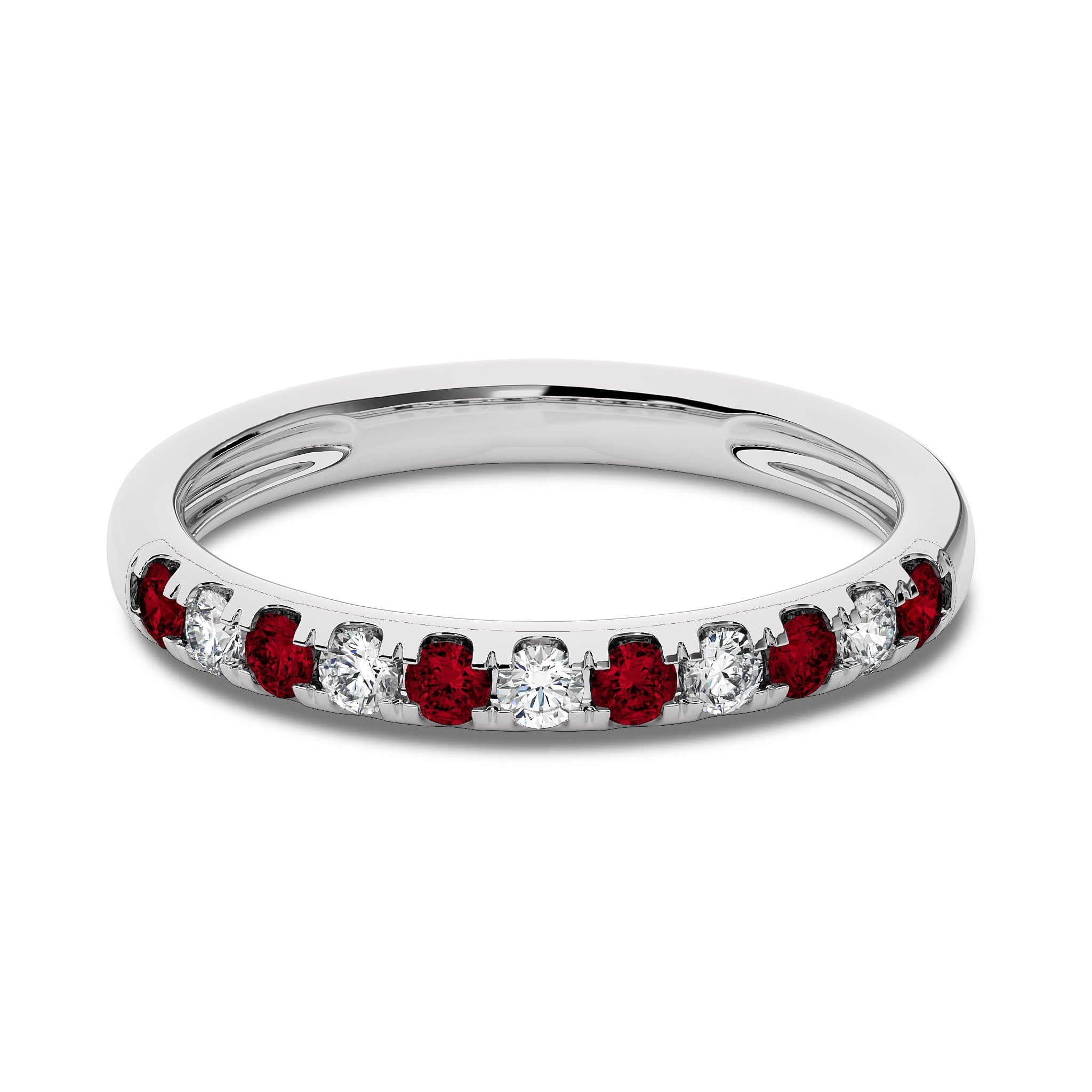 1/2 CT. Round Natural Diamond and Ruby Half Eternity Band