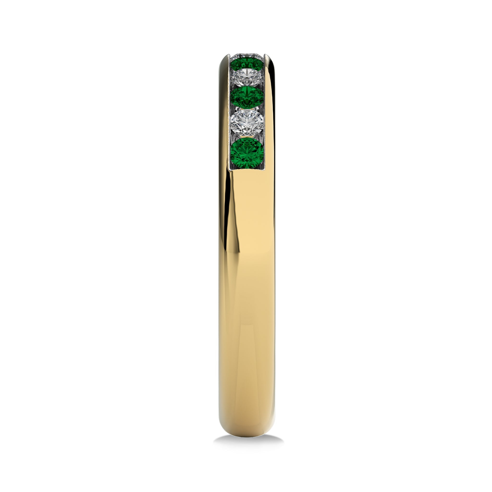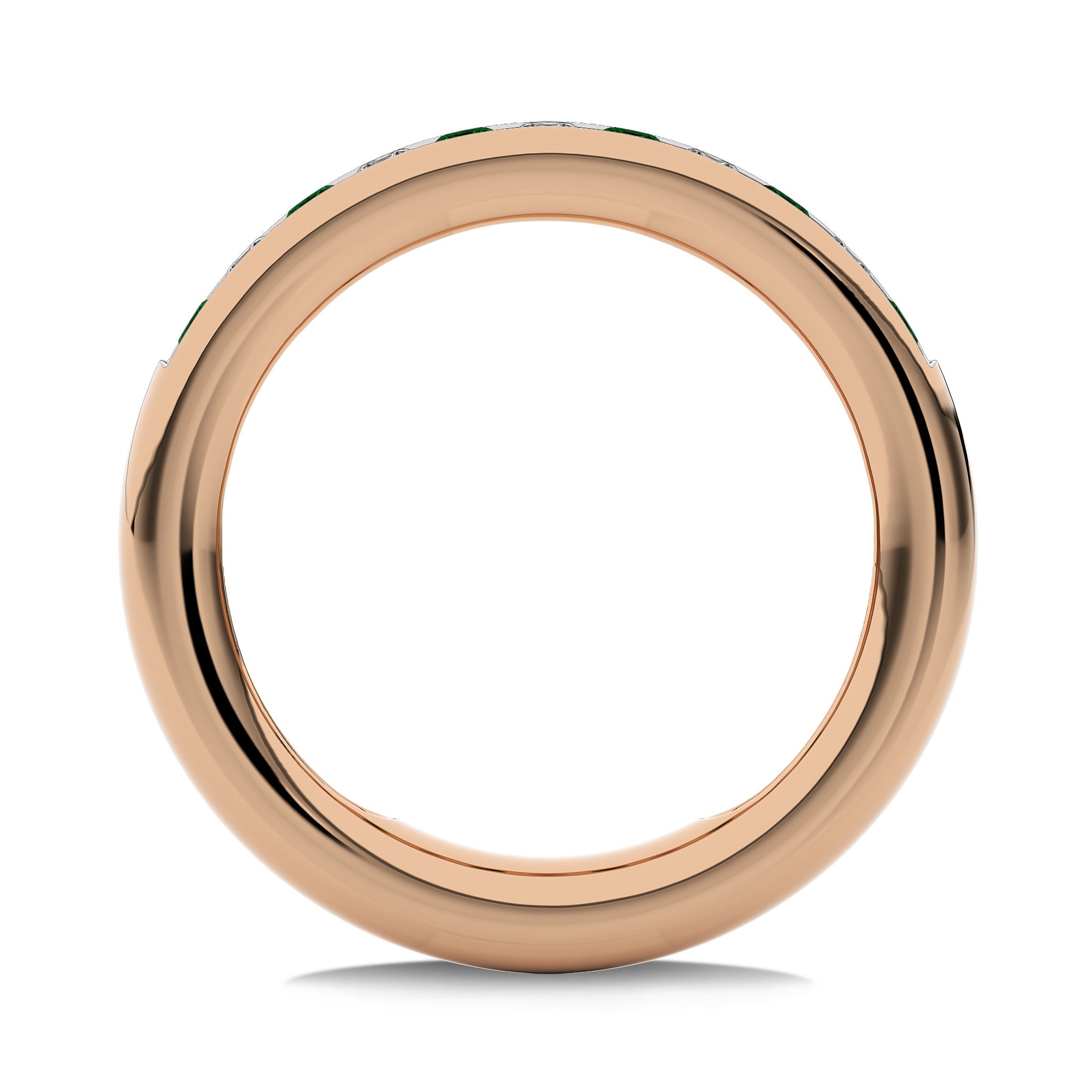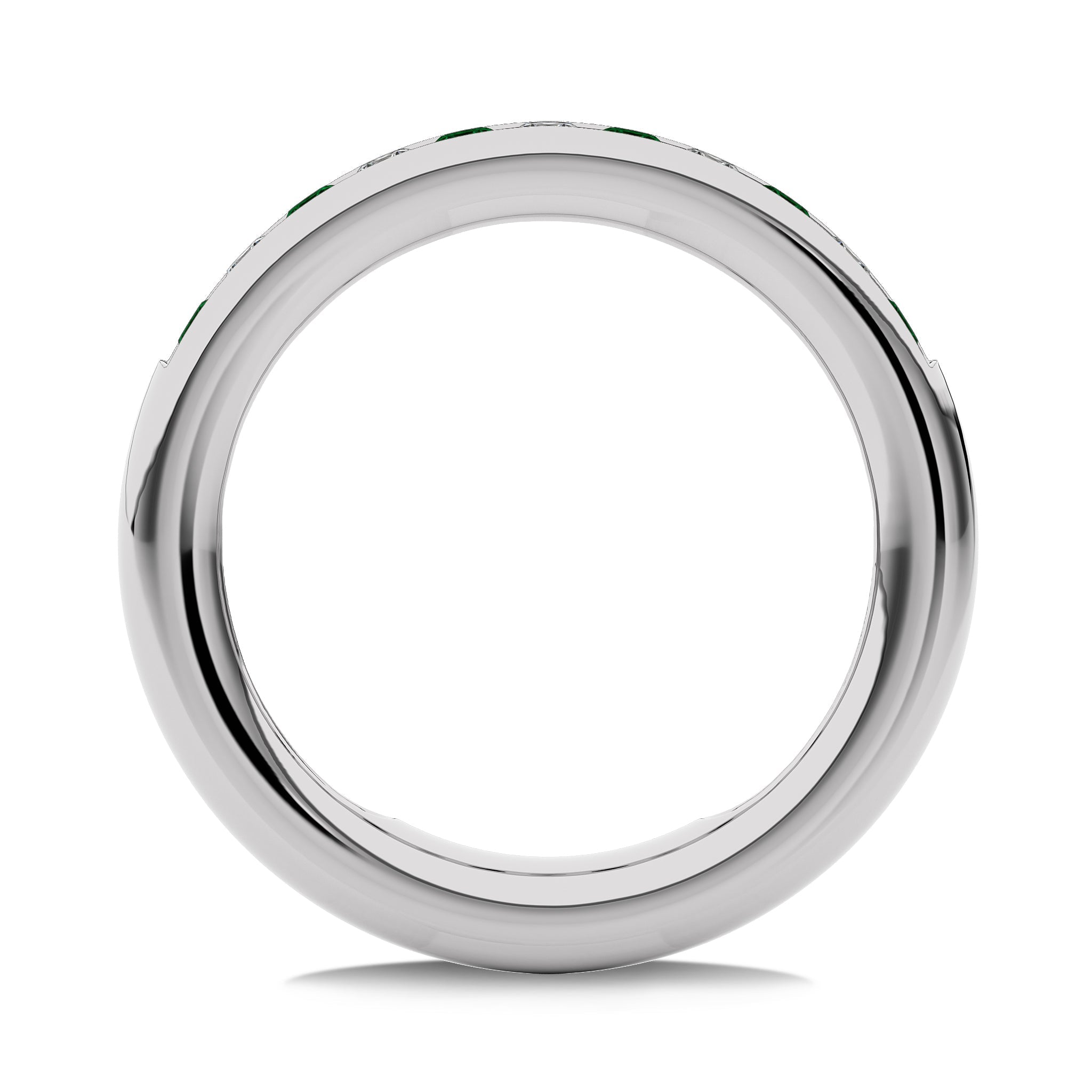 3/8 CT. Round Natural Diamond and Emerald Half Eternity Band