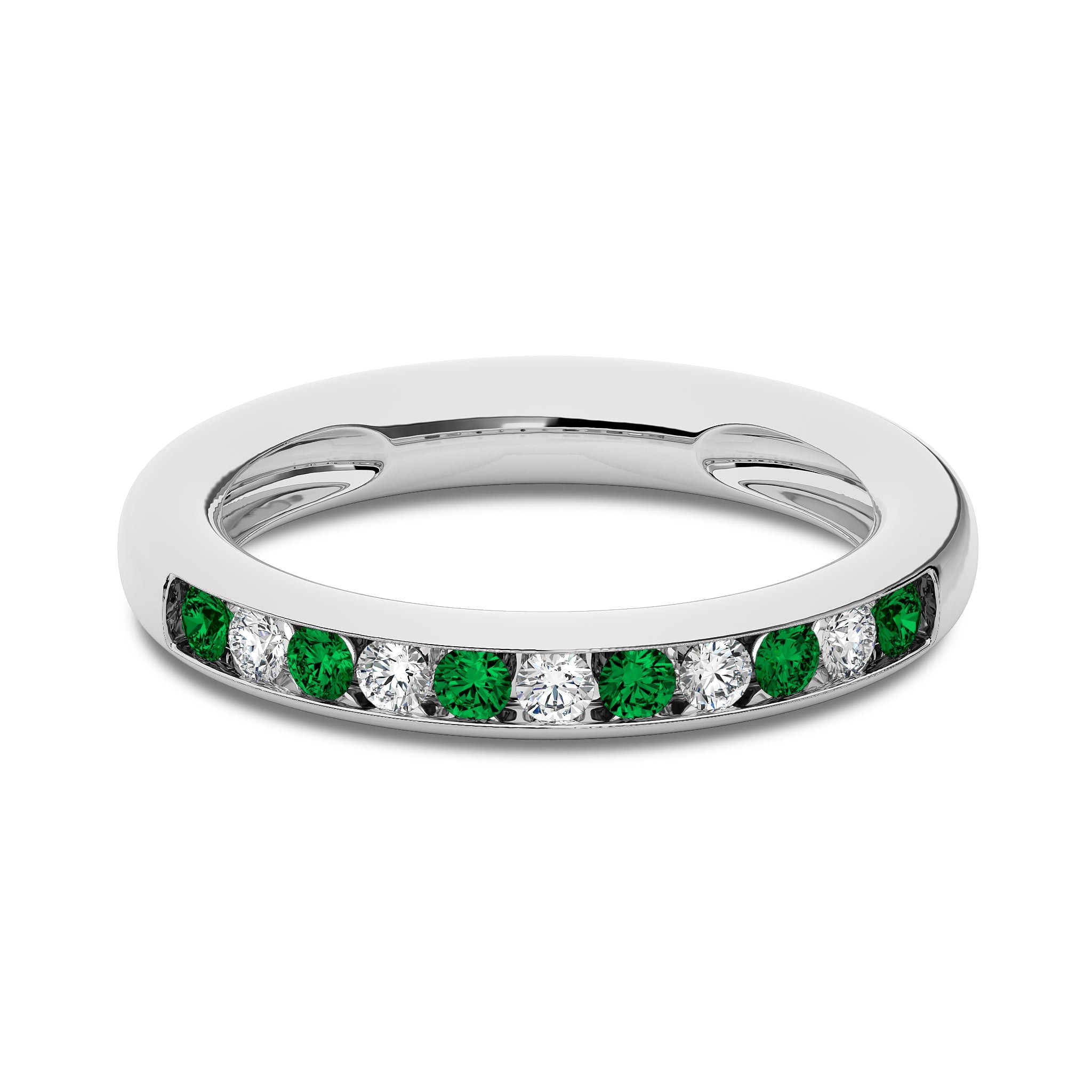 Experience the harmony of elegance with this 3/8 CT. Round Natural Diamond and Emerald Half Eternity Band. Set in a sleek channel design, the band alternates between sparkling round diamonds H-I/I1-I2 and vibrant emeralds, offering a striking contrast of brilliance and color. Elevate your collection with this timeless piece that radiates sophistication and charm