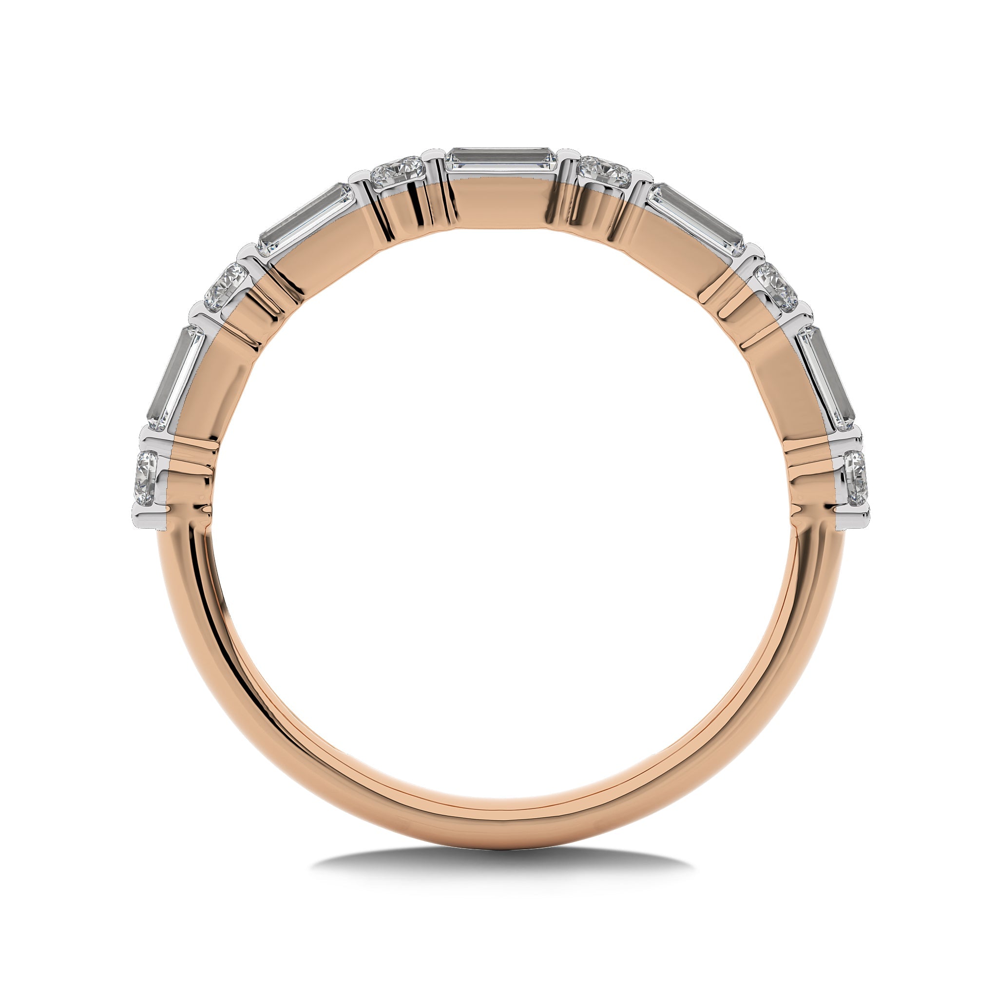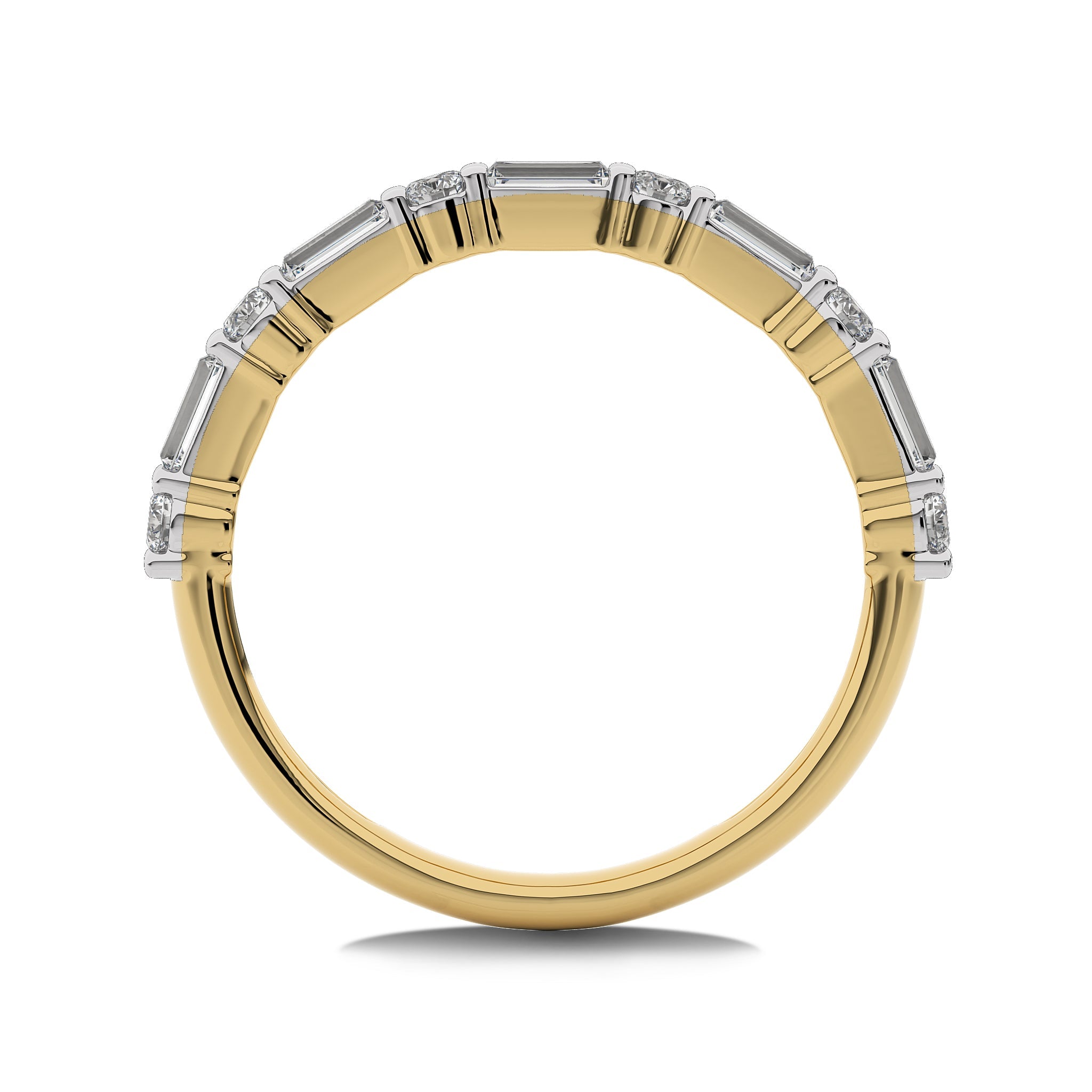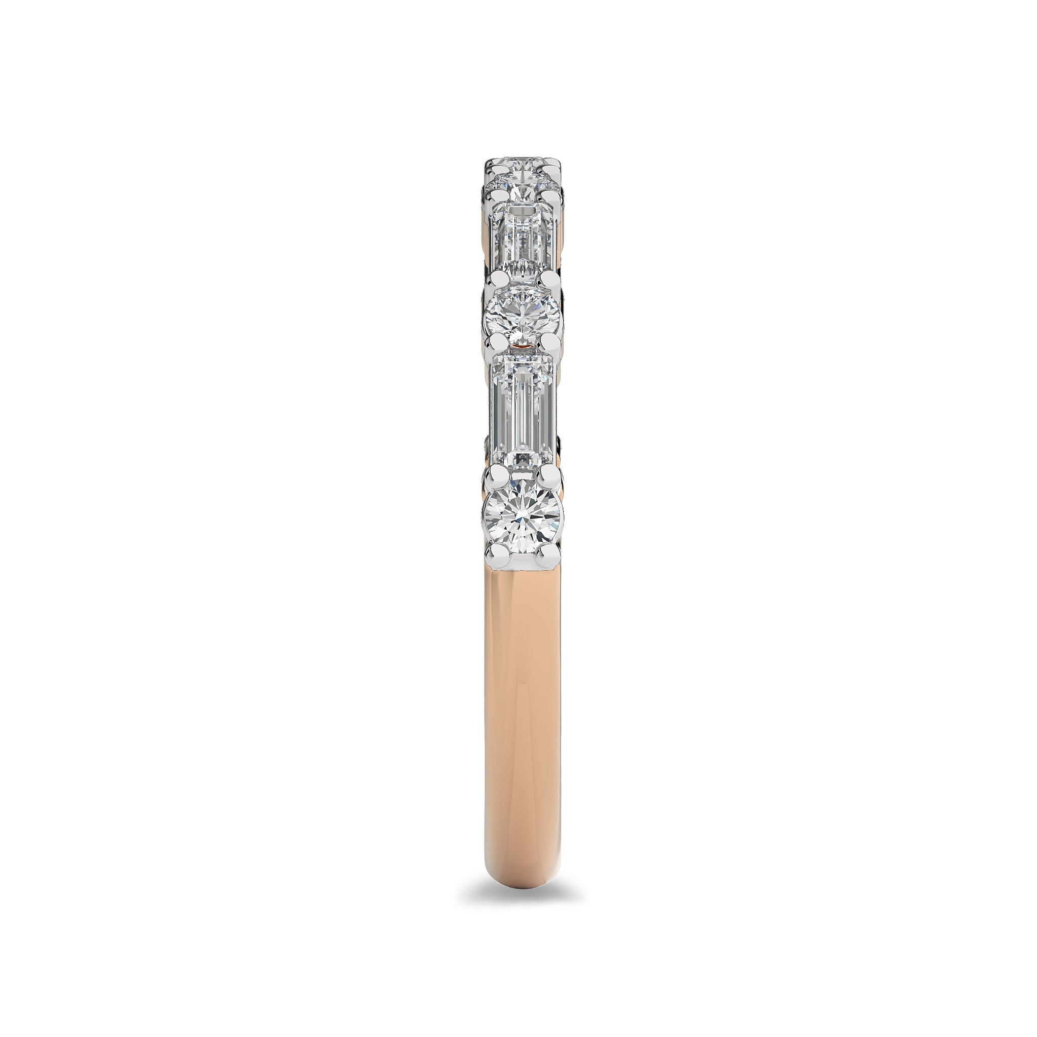This elegant wedding band showcases 1/2 carat of round and baguette lab-created diamonds in DEF/SI quality, meticulously set in prong settings. The seamless combination of diamond shapes offers a sophisticated touch, ideal for celebrating your union with grace and style