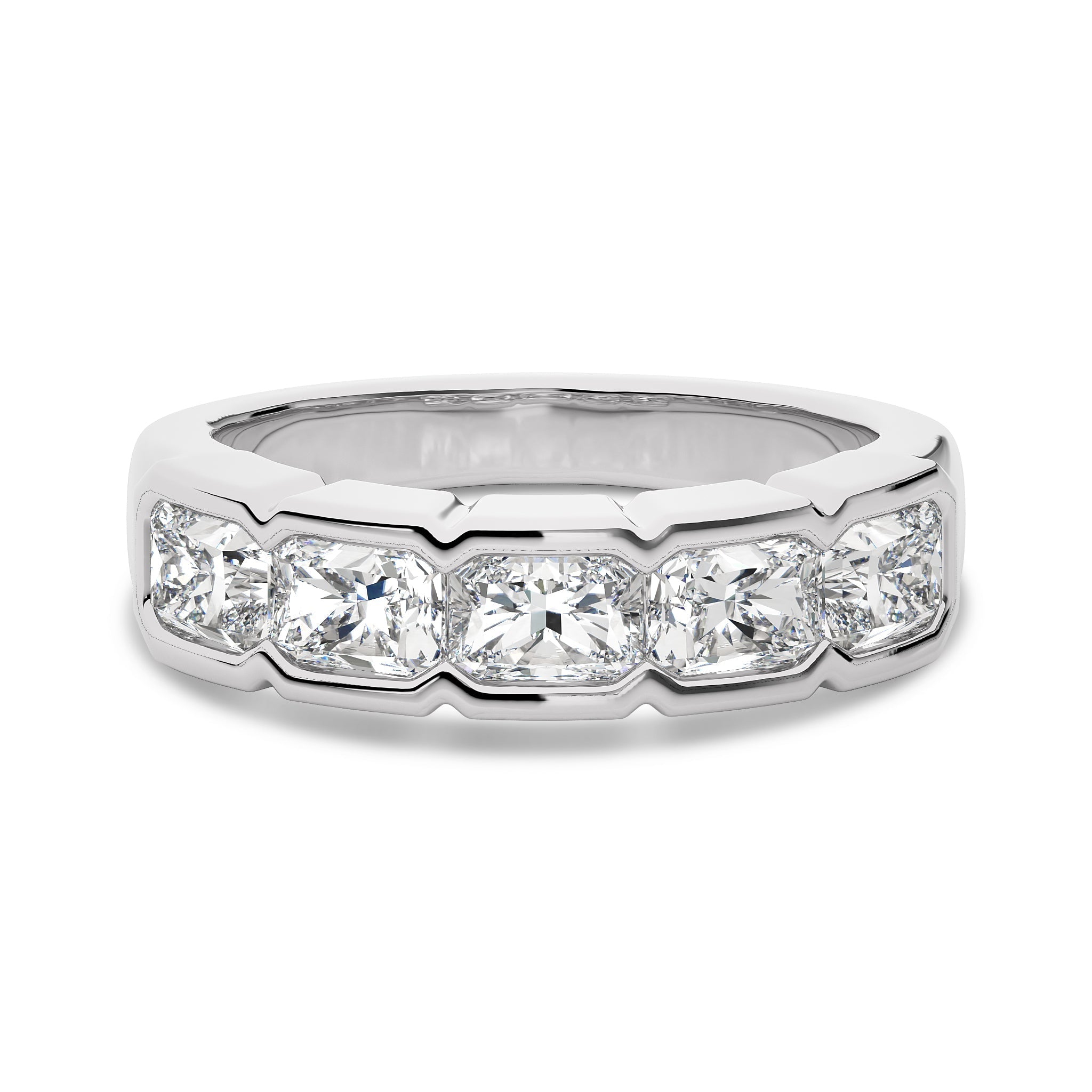 Indulge in elegance with this 2 CT. Emerald Lab Created Diamond Ring Band, featuring DEF/SI quality diamonds. Channel set for a sleek and modern look, this band showcases stunning clarity and sophistication. An ideal choice for a timeless piece that enhances any jewelry collection
