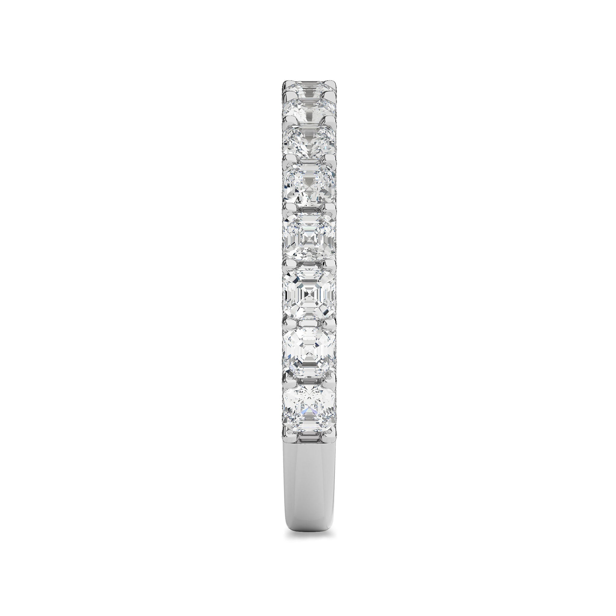 Bask in the luxury of this 2 CT. Asscher and Round Lab Created Diamond Wedding Band. Set in a delicate combination of micro split and prong settings, the alternating Asscher and round diamonds, showcasing DEF/SI quality,Perfect for celebrating everlasting love or adding a touch of opulence to any ensemble, this band promises timeless allure and enduring brilliance