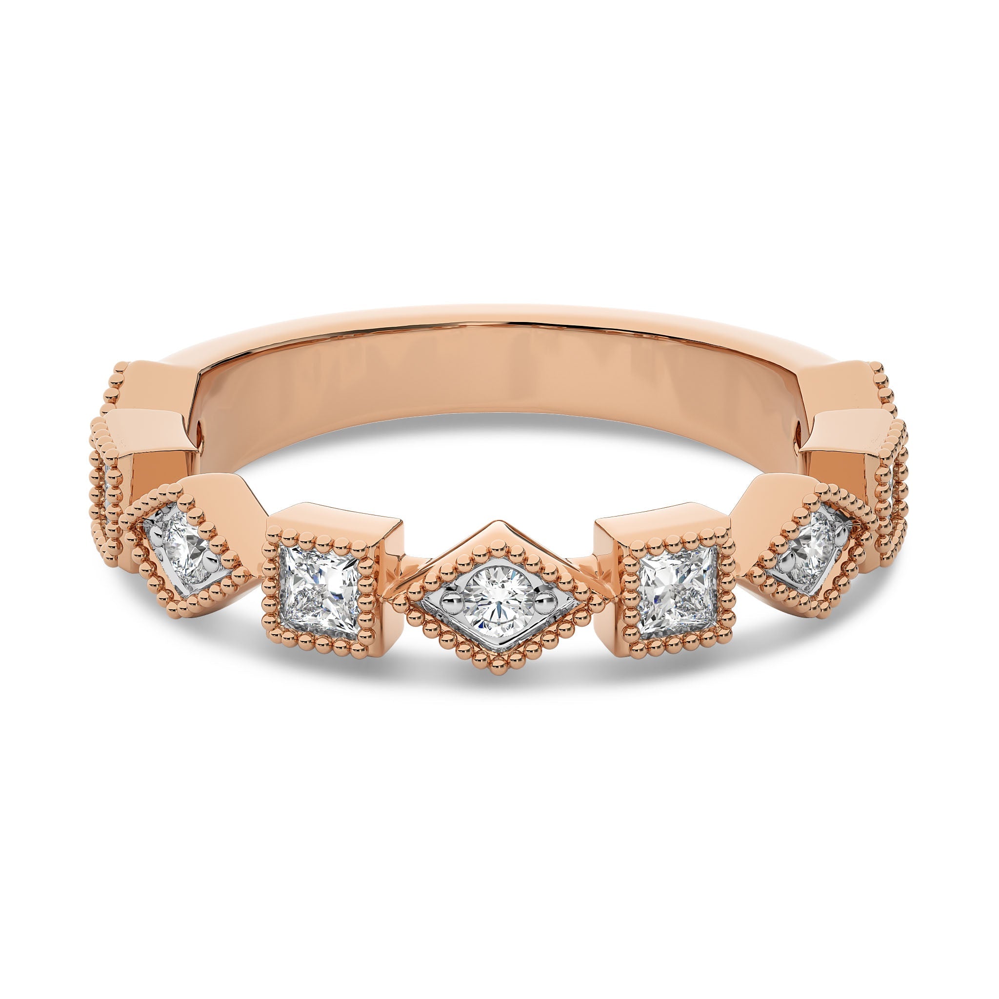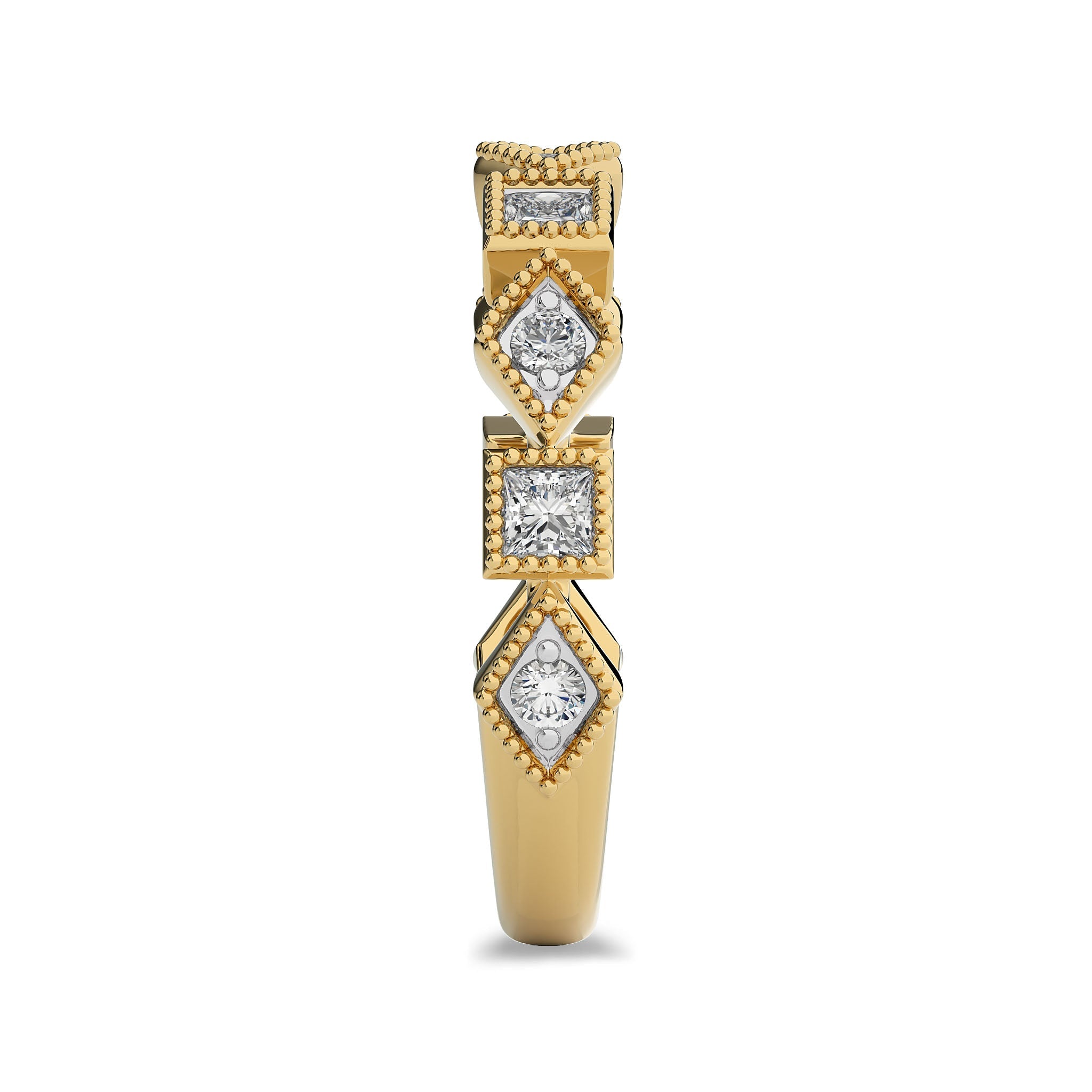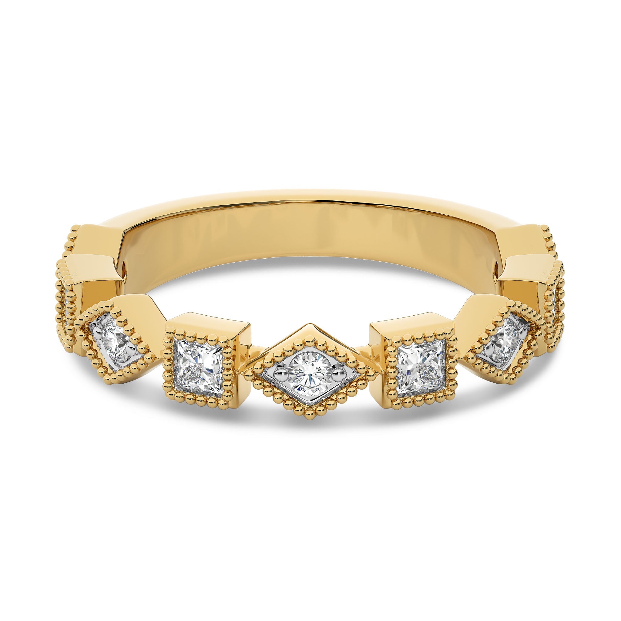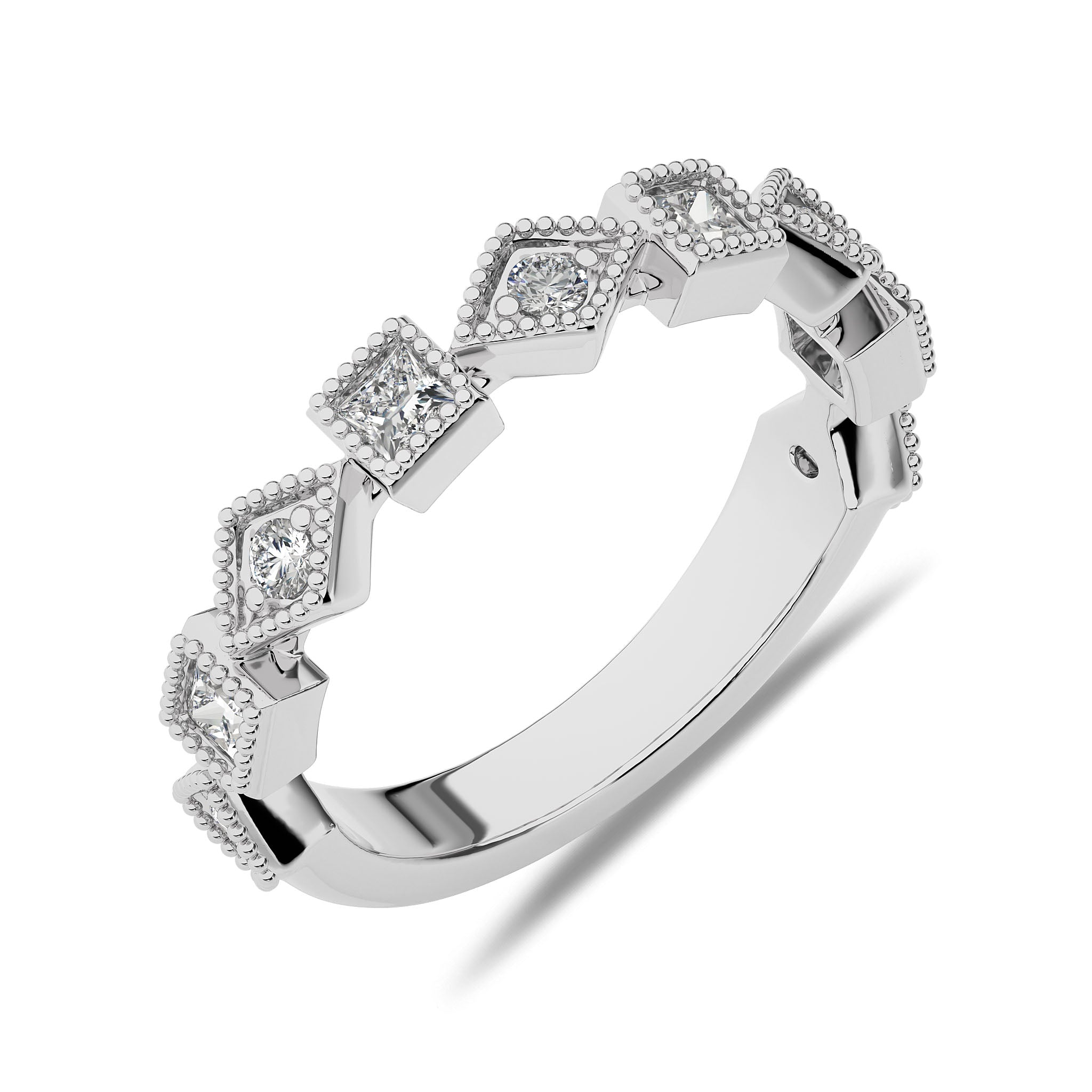 Revel in the elegance of this 3/8 CT. Princess and Round Natural Diamond Stackable Wedding Band. Featuring H-I/I1-I2 quality diamonds set in a combination of pave and bezel settings with intricate Milgrain detailing, this band effortlessly blends sophistication and charm. Ideal for stacking or wearing alone, it adds a timeless allure and a touch of sparkle to any look