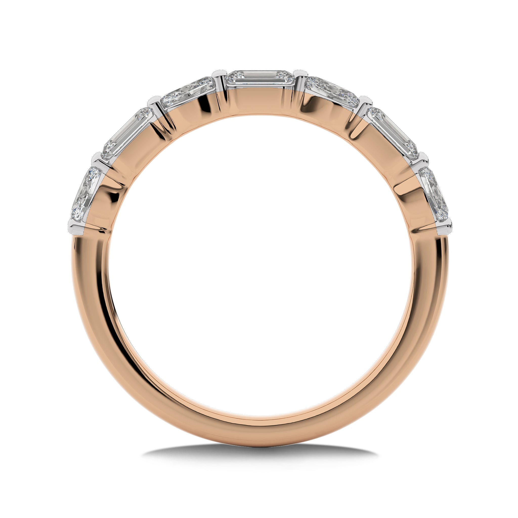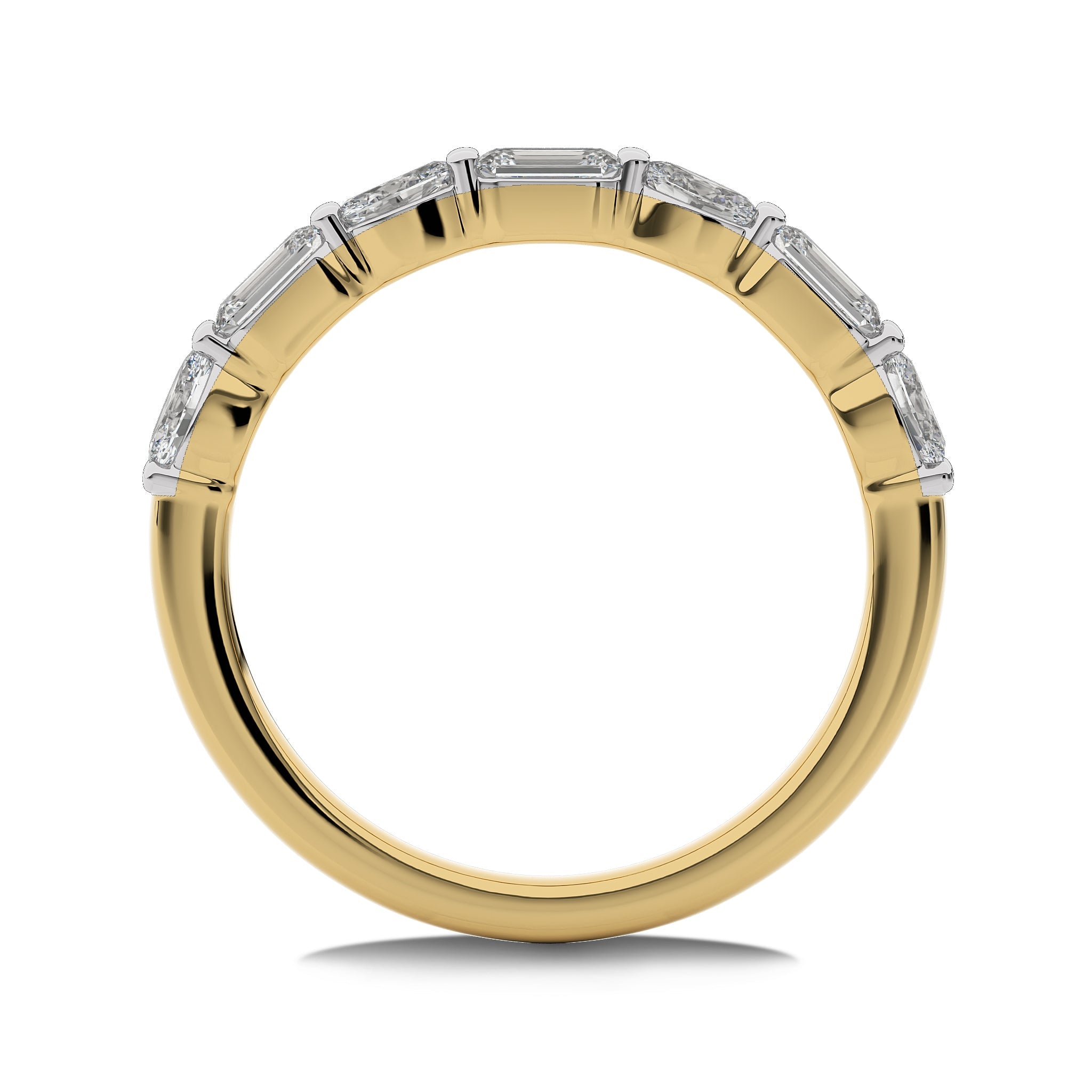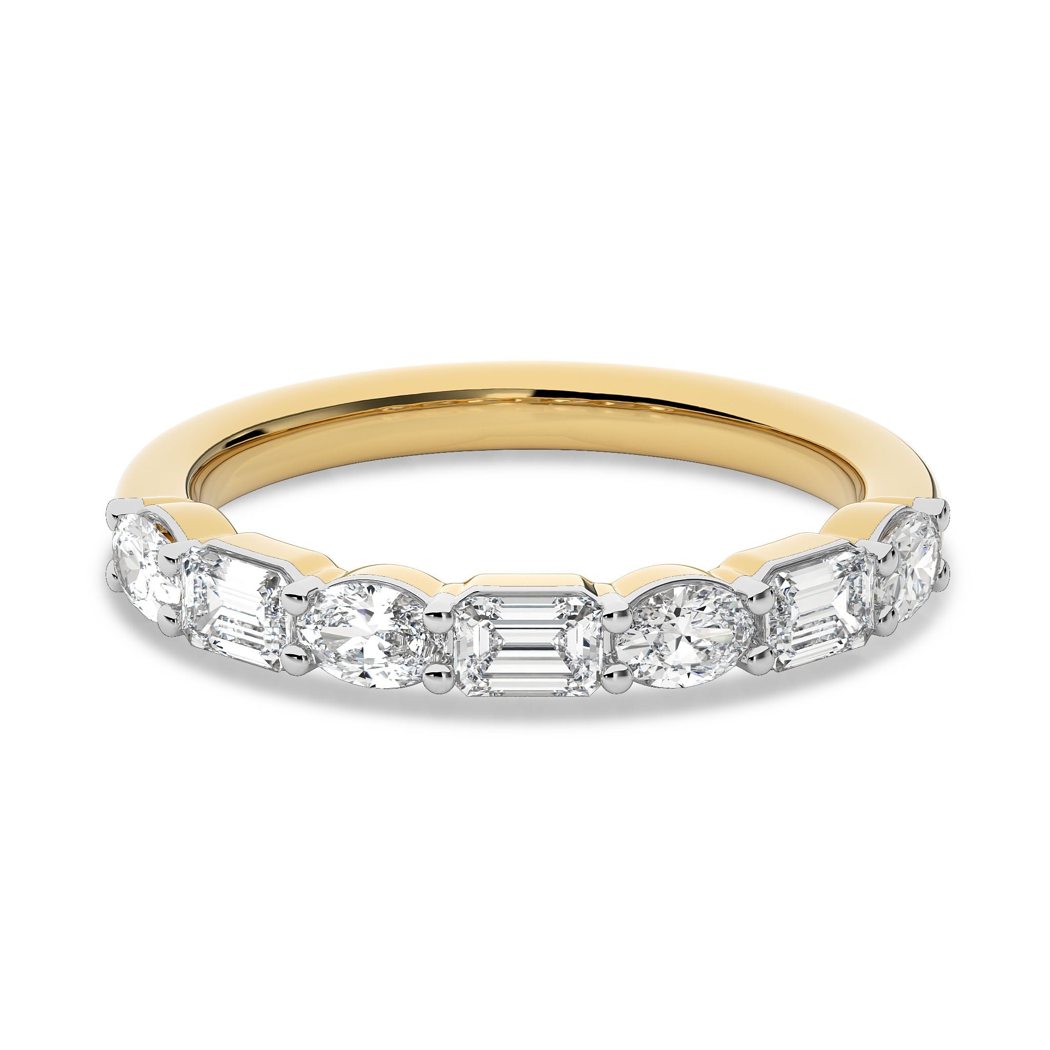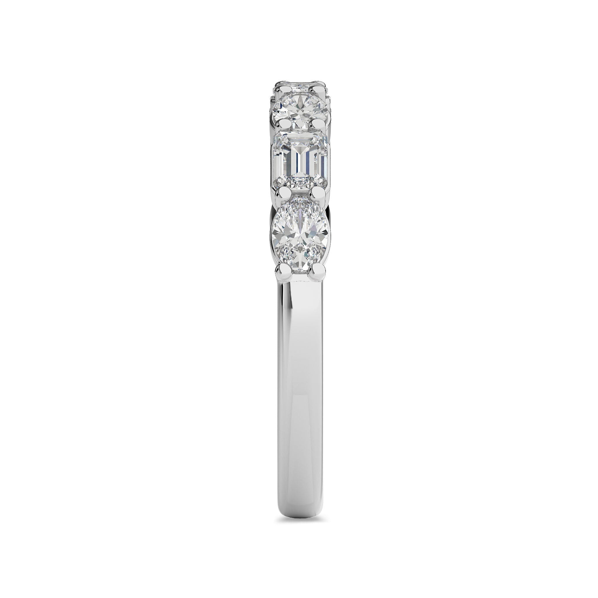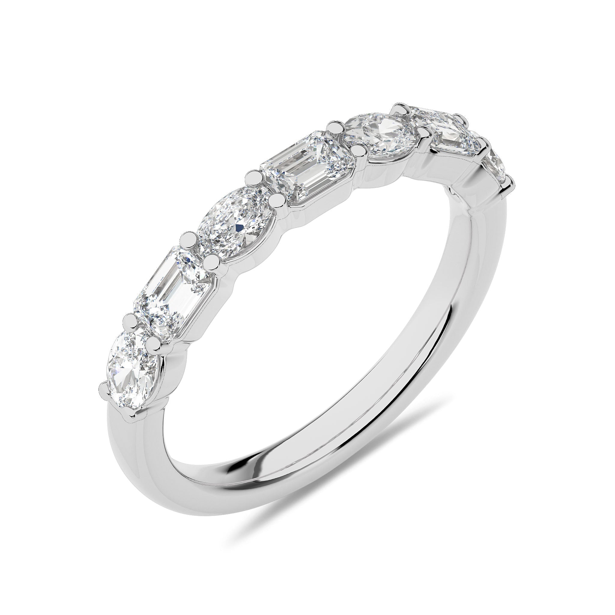 Discover the singular beauty of this 1 CT. half eternity band. Alternating emerald and oval natural diamonds, securely set in prong settings, Craft a special moment with this distinctive allure