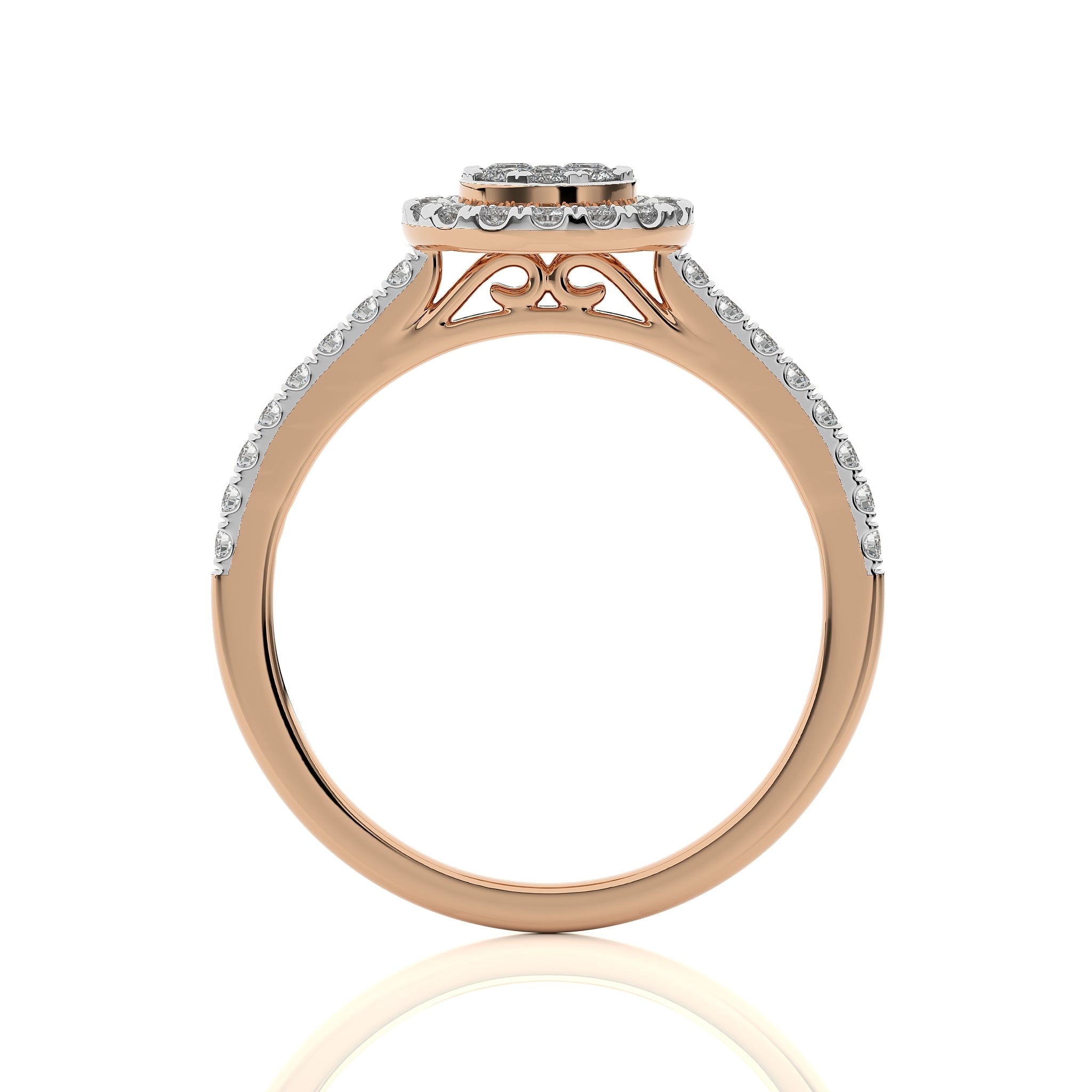 Captivate with this exquisite halo engagement ring, showcasing a brilliant 1/2 carat DEF/SI Lab Created Diamonds . Its micro Split and Pressure setting adds a touch of delicacy, making it a stunning symbol of your love and commitment