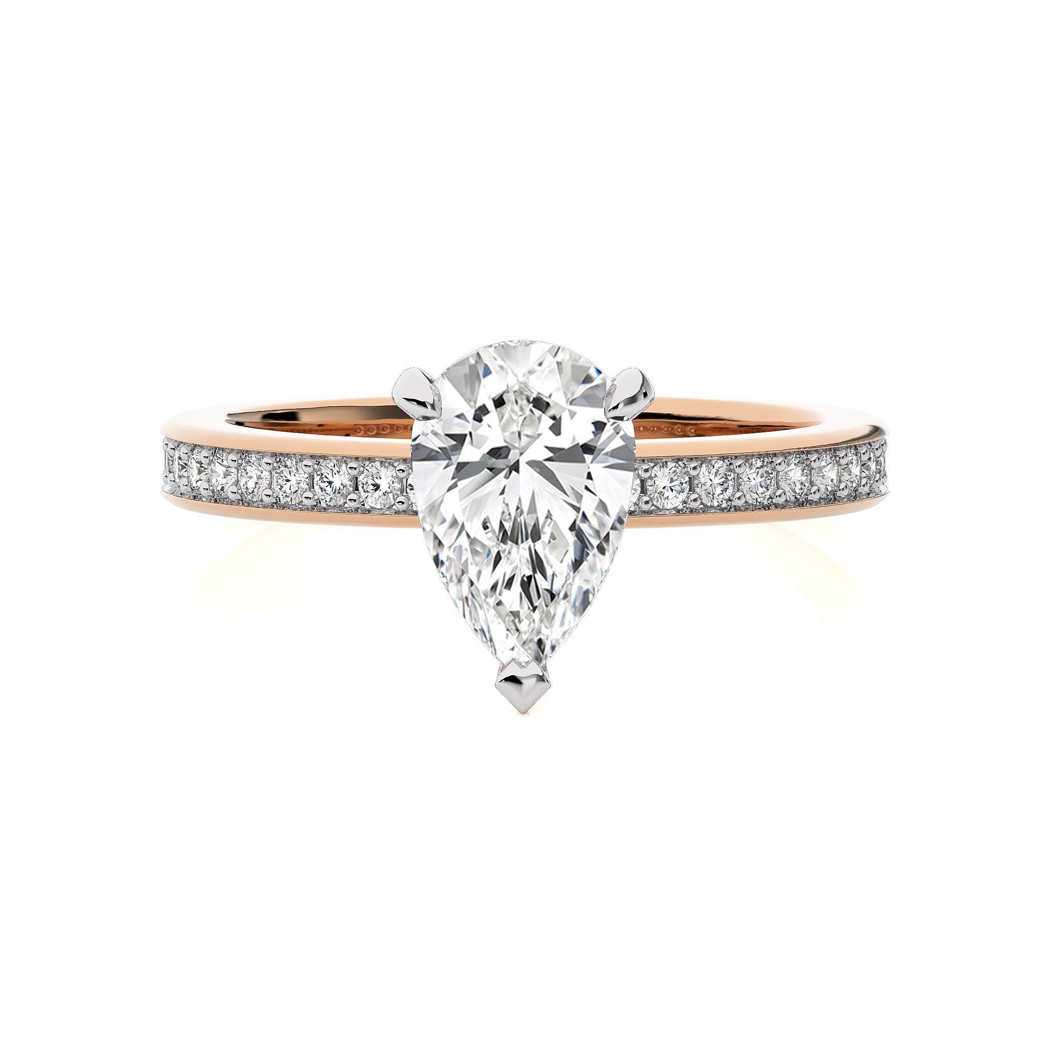 Relish the beauty of the graceful pear cut engagement ring available in lab Created and natural diamonds, this ring set in pavé and prong settings. Let this stunning ring be a timeless testament to your love