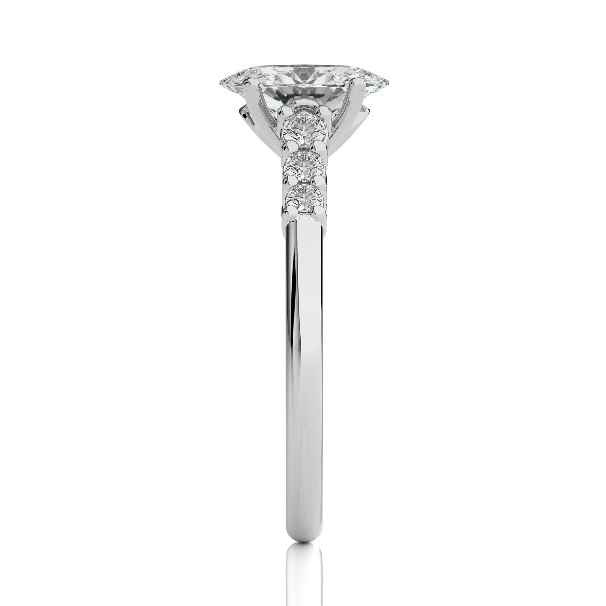 Admire the style of the oval cut engagement ring available in lab created and natural diamonds set in a prong setting. Cherish every moment with this elegant testament to your love