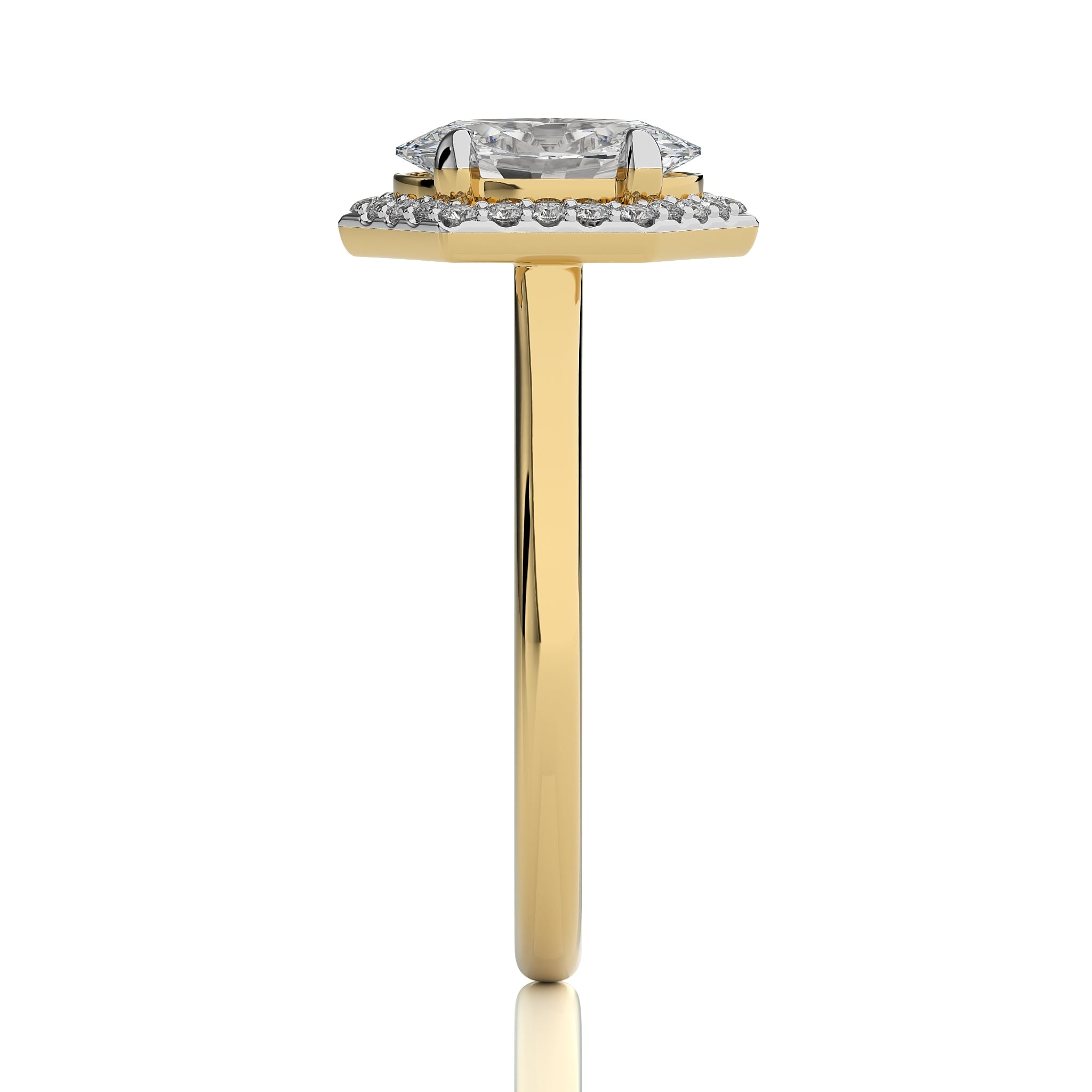 Hexagon Oval and Round Halo Diamond Engagement Ring